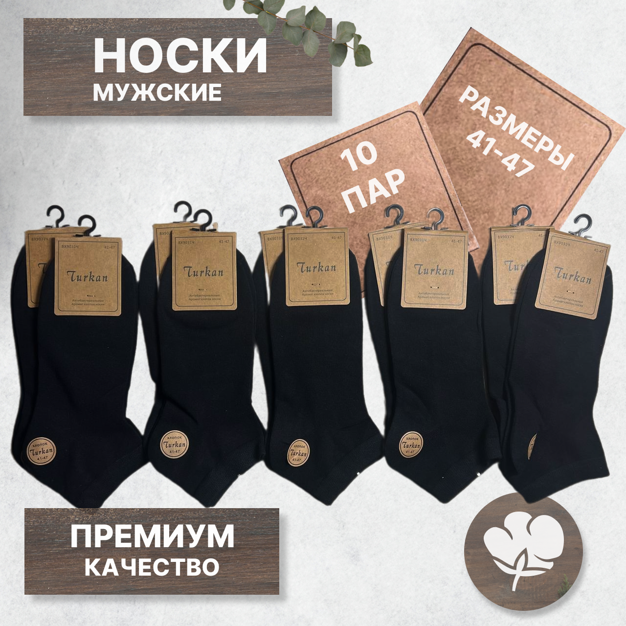 Носки мужские набор короткие летние хлопок 10 пар Туркан