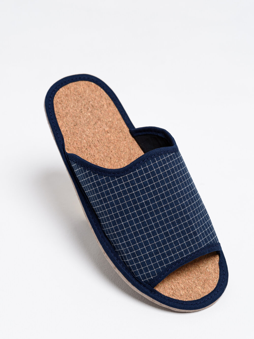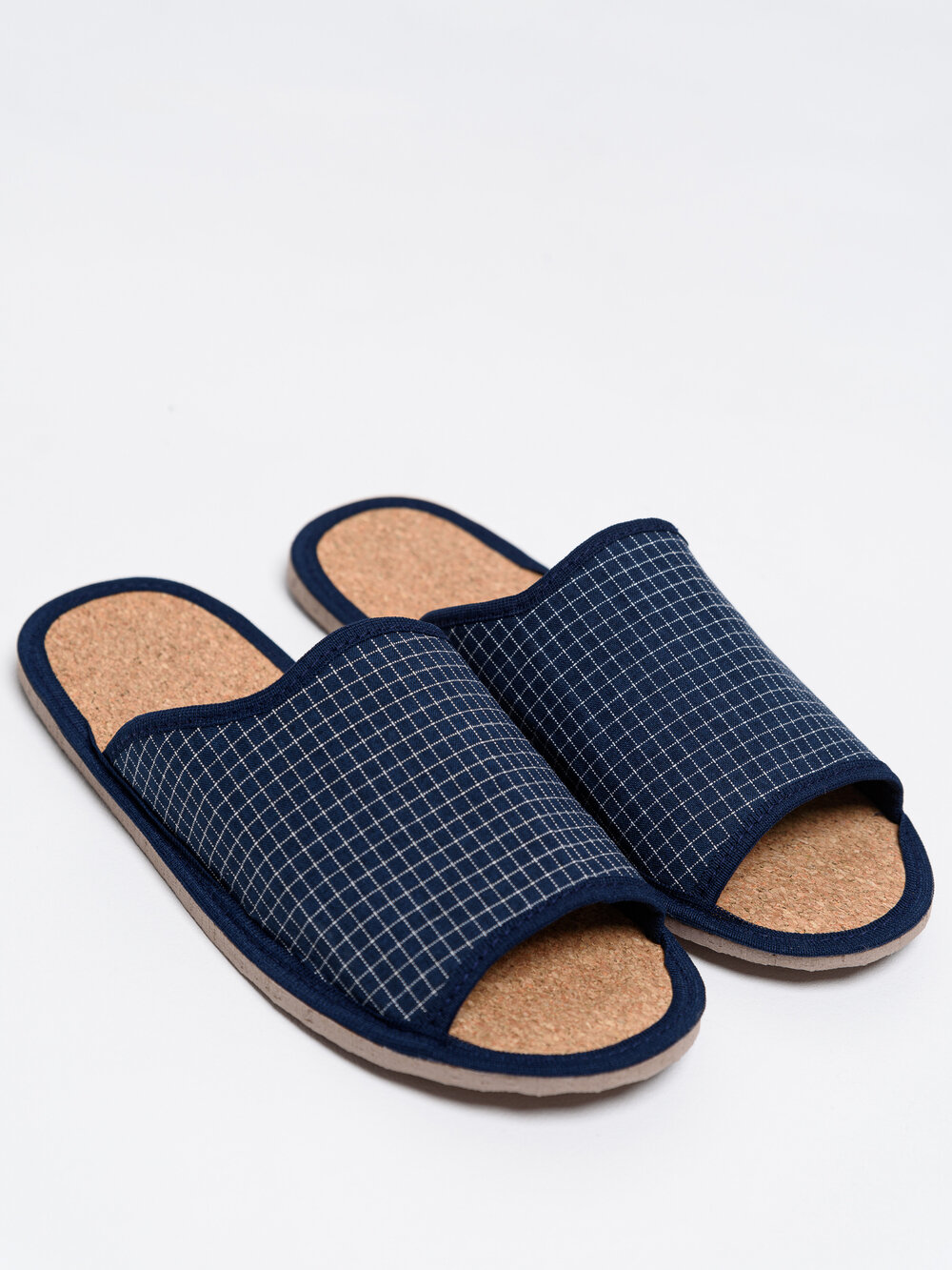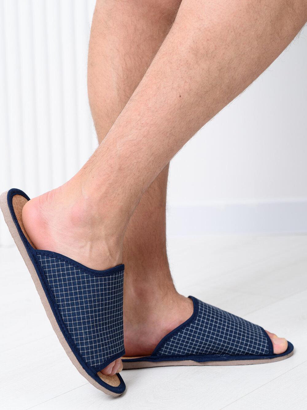 Купить Мужские домашние тапки "LepiloV", открытые, на пробковой стельке. Размер 44. Синяя мелкая клетка.
