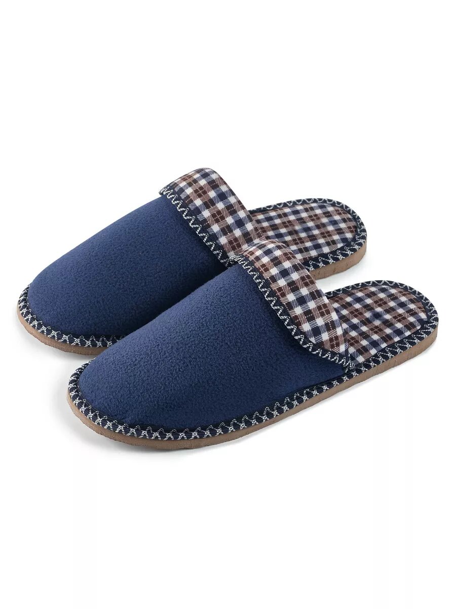 Мужские домашние тапки "LepiloV", закрытые, на текстильной стельке. Размер 45. Синий флис клетка сине-коричневая.