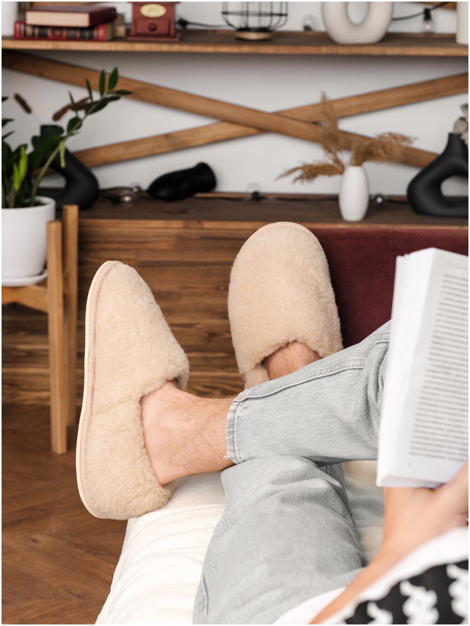 Тапочки из шерсти Холти "Уютные" теплые меховые домашние женские (бежевые) (36)
