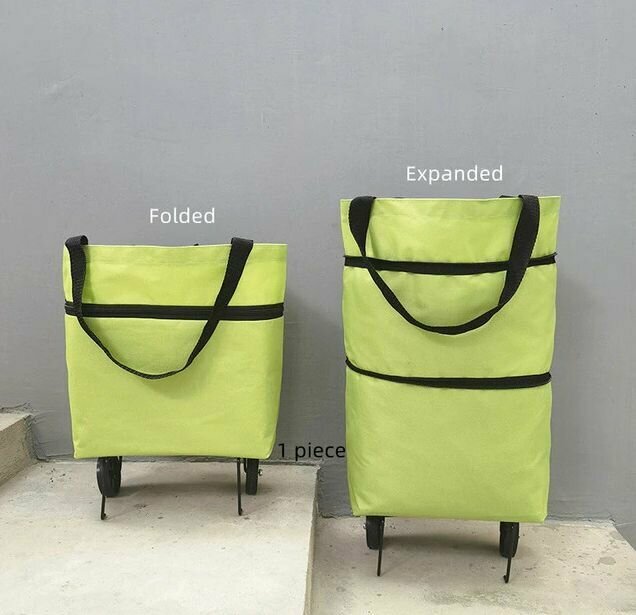 Сумка на колесах хозяйственная складная зеленая / без подклада / с расширением интересное: