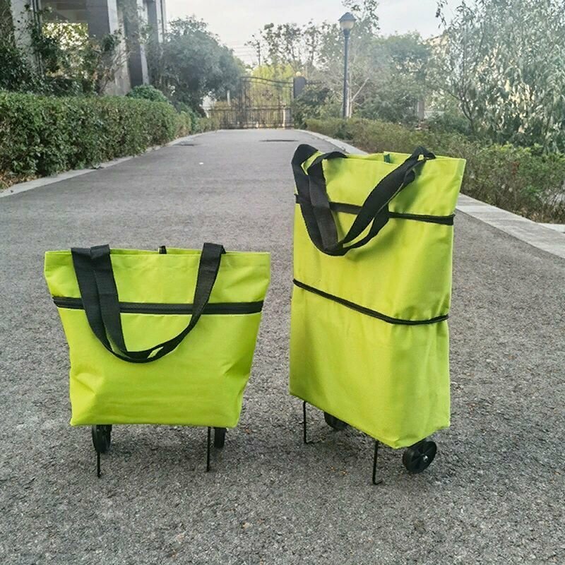 Сумка на колесах хозяйственная складная зеленая / без подклада / с расширением