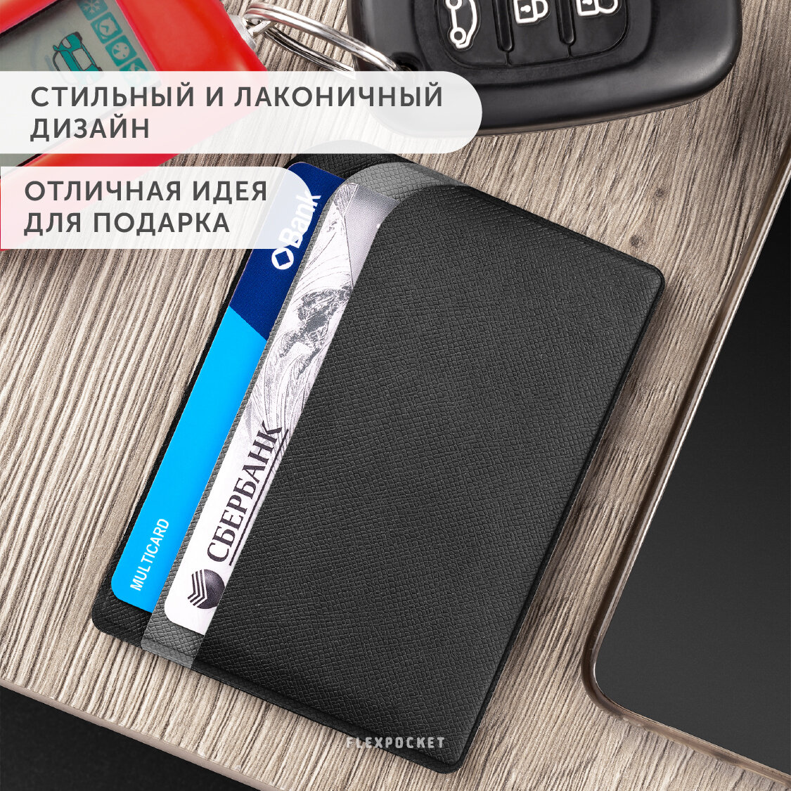Картхолдер Flexpocket, фактура зернистая, черный