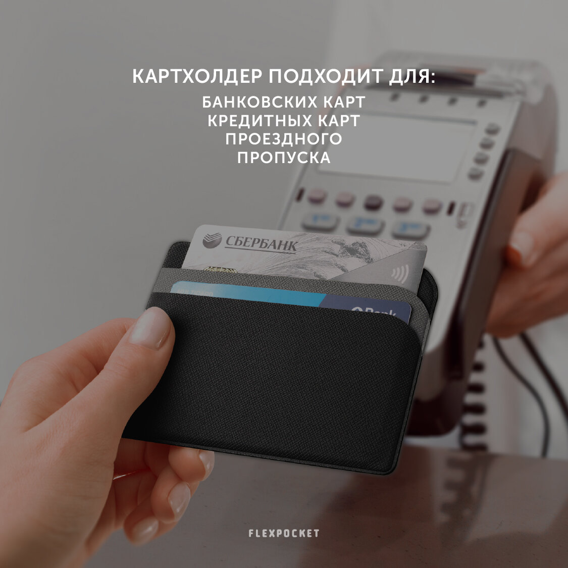 Защитный футляр для карт / Картхолдер / Кредитница чехол / Держатель для кредитных карт / Визитница Flexpocket, цвет черный