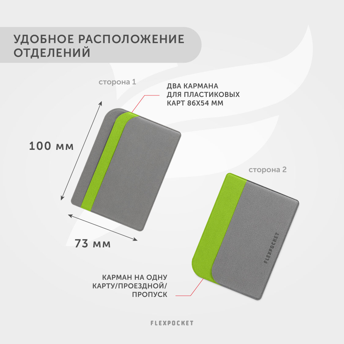 Картхолдер Flexpocket, фактура зернистая, серый/зеленый