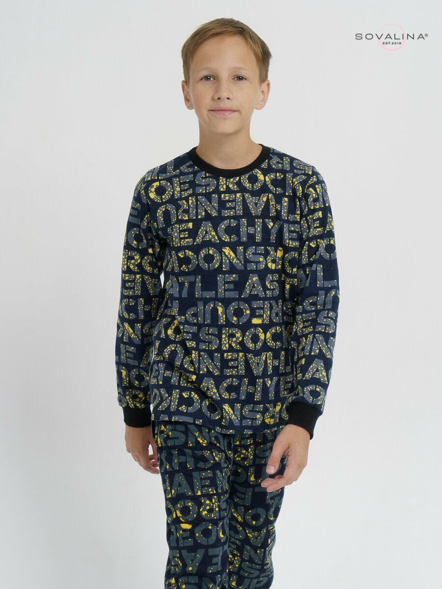 Комплект одежды SOVALINA Желтые буквы, размер 146, темно-синий/желтый