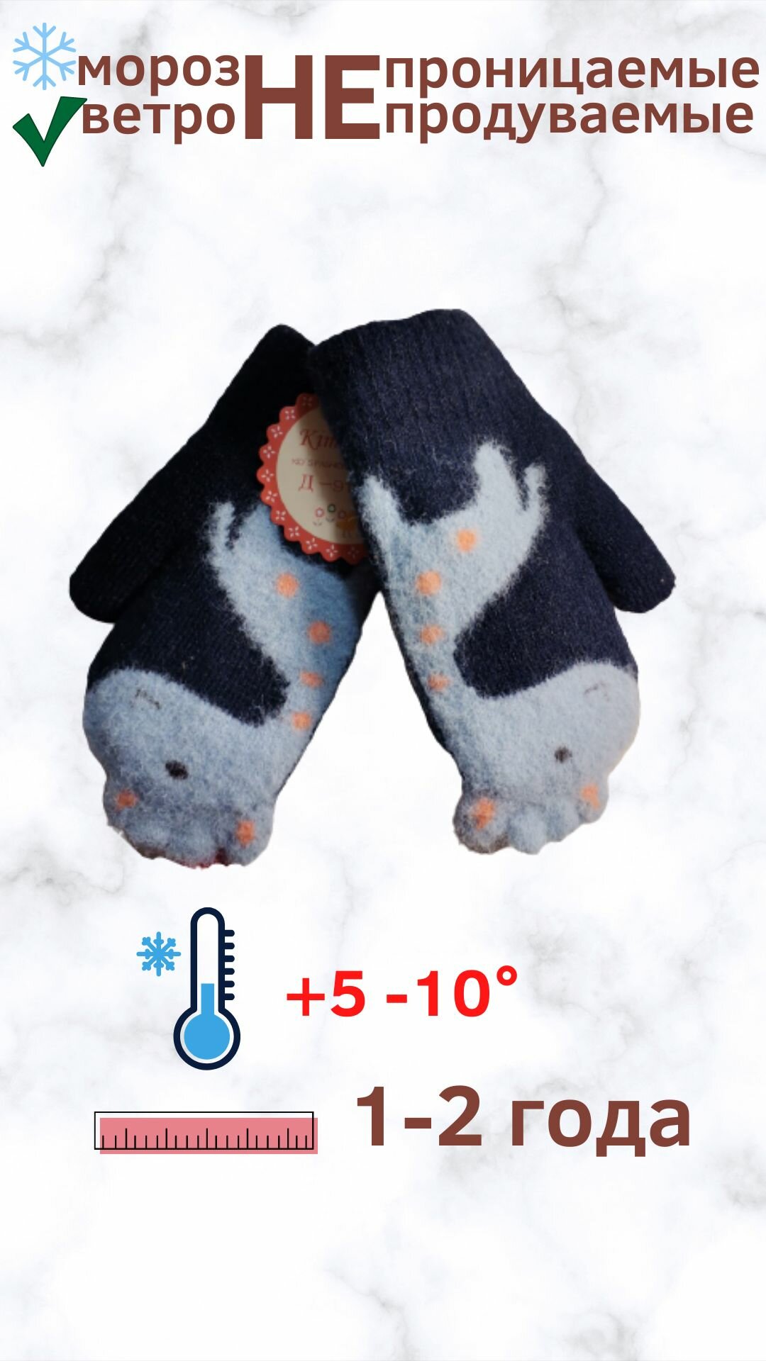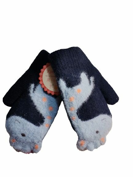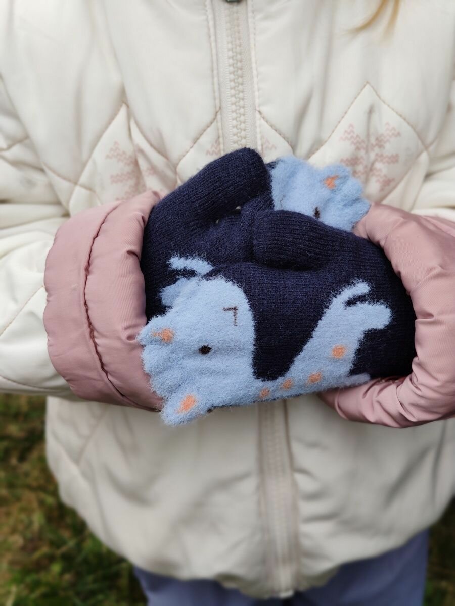 Детские варежки с пингвином / Зимние варежки на веревочке с милым "Пинги - Винди", темно-синий