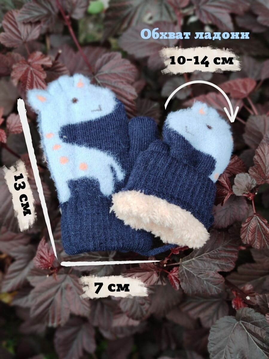 Купить Детские варежки с жирафом / Зимние варежки на веревочке с милым "Жира - Фом", темно-синие
