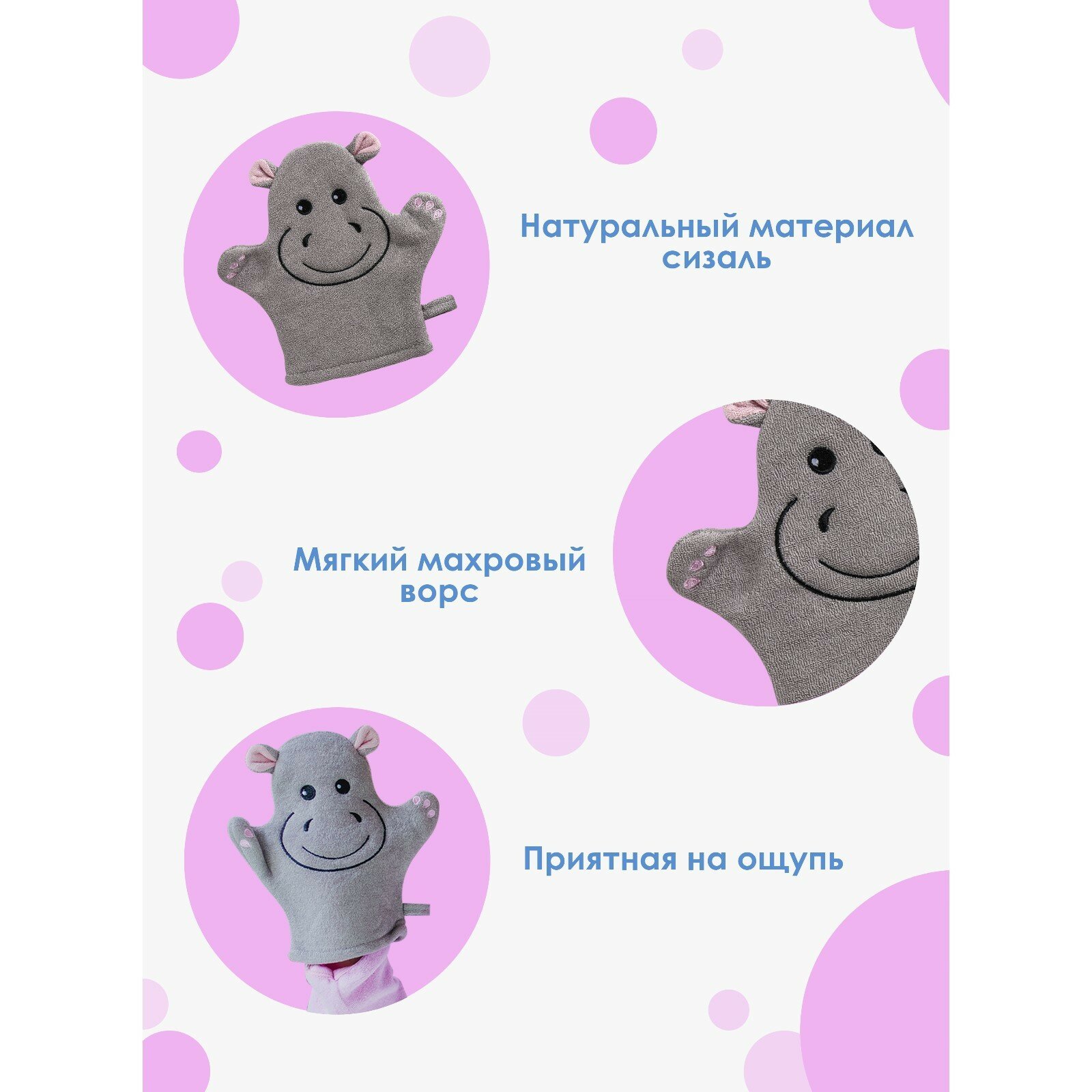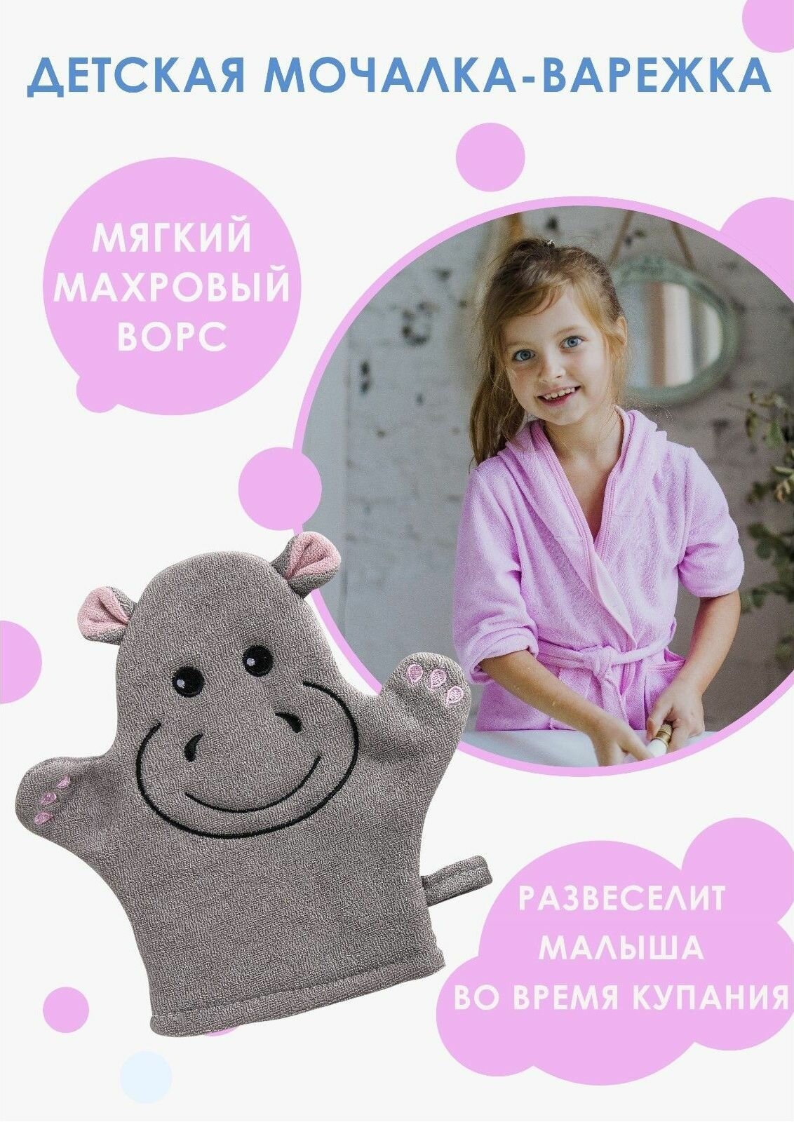 Мочалка-варежка детская для купания Доляна Бегемотик