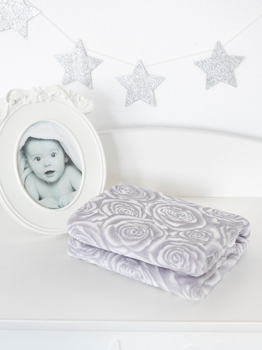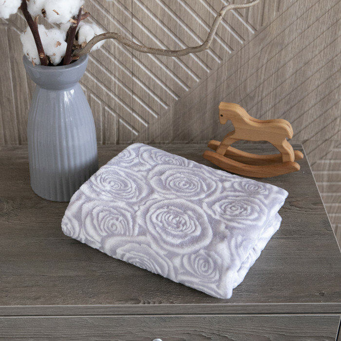 Купить Плед для новорожденного 75х100 пушистый детский в кроватку коляску , розы серый