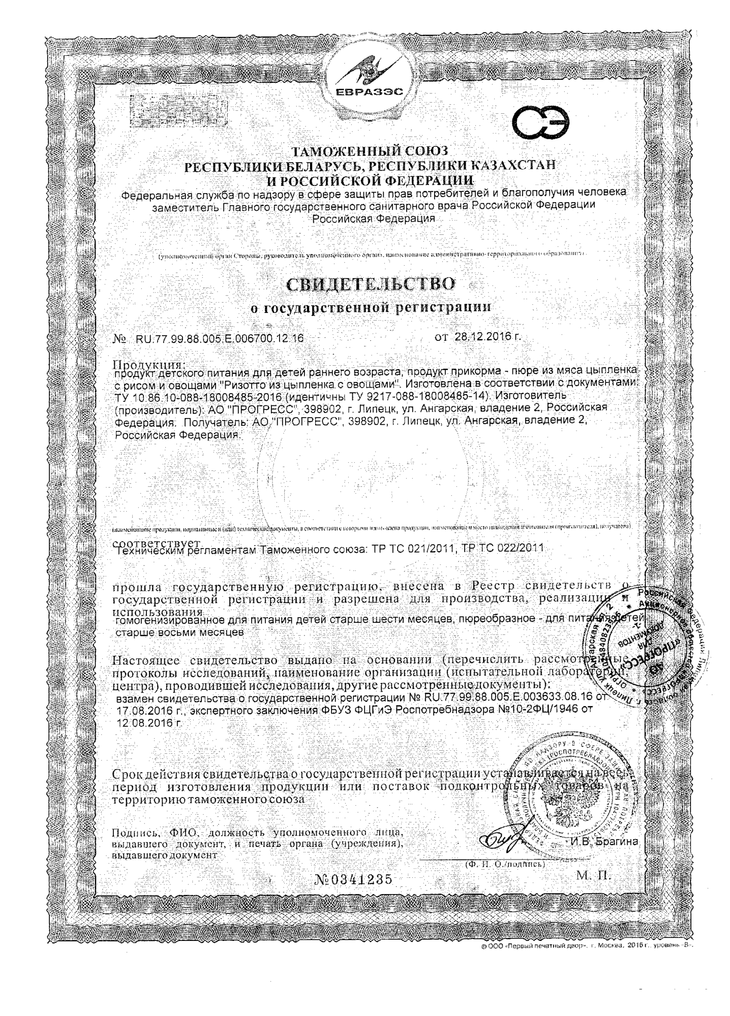 | Состав | мясо цыпленка / рисовая крупа / морковь / картофель / масло растительное / вода питьевая |