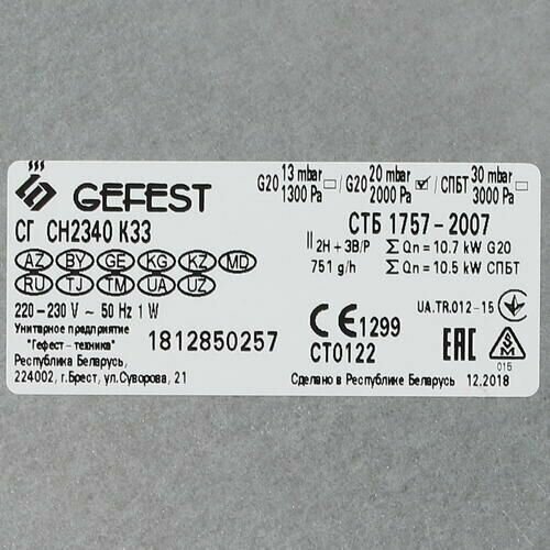Варочная панель Gefest 2340 К33