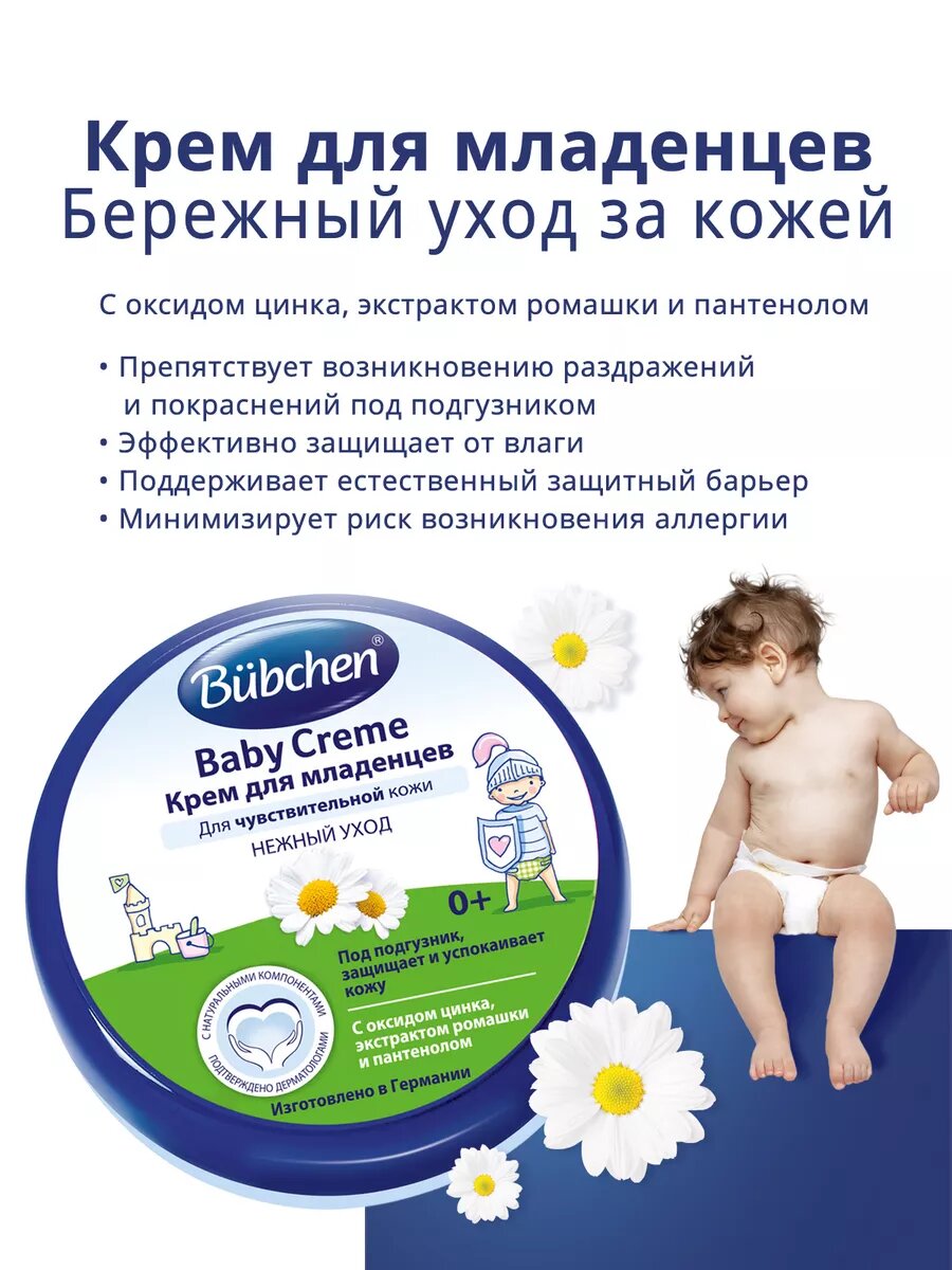 | Дополнительная информация | Bubchen - гипоаллергенная косметика для детей с рождения. Благодаря натуральным компонентам и ценным растительным маслам Бюбхен гарантирует безопасный и бережный уход за нежной кожей ребенка. |