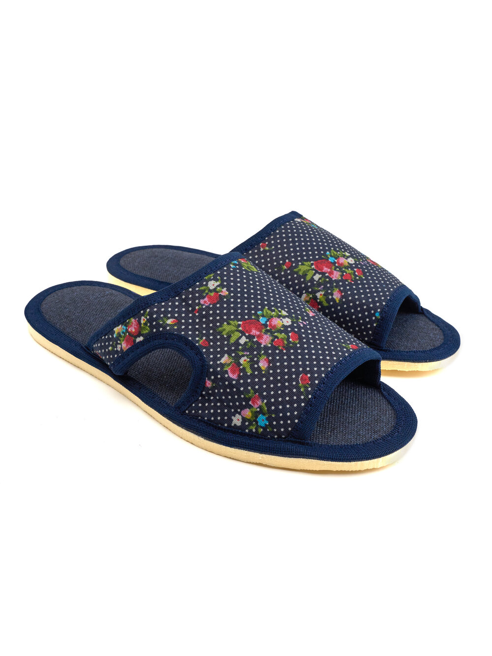 Купить Женские домашние тапочки "LepiloV", открытые, на текстильной стельке. Размер 40. Синие, горох с цветами.