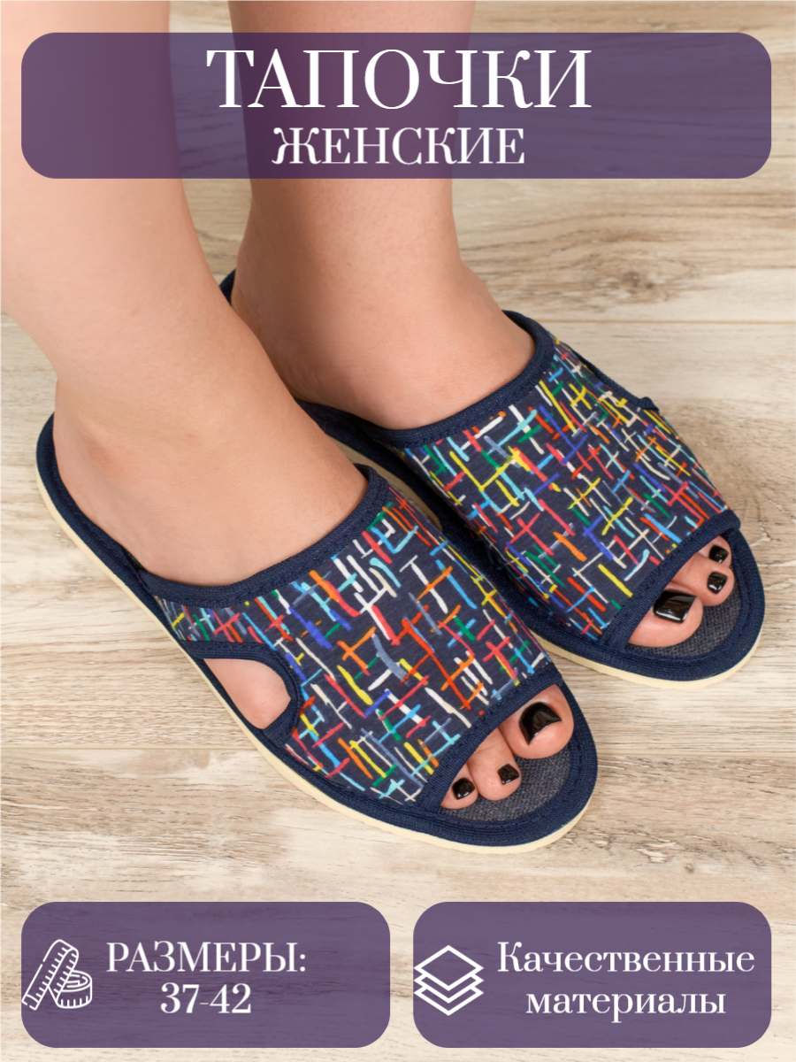 Купить Женские домашние тапочки "LepiloV", открытые, на текстильной стельке. Размер 37. Чёрточки.