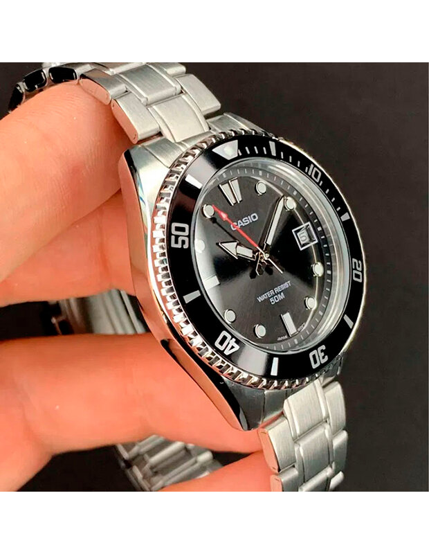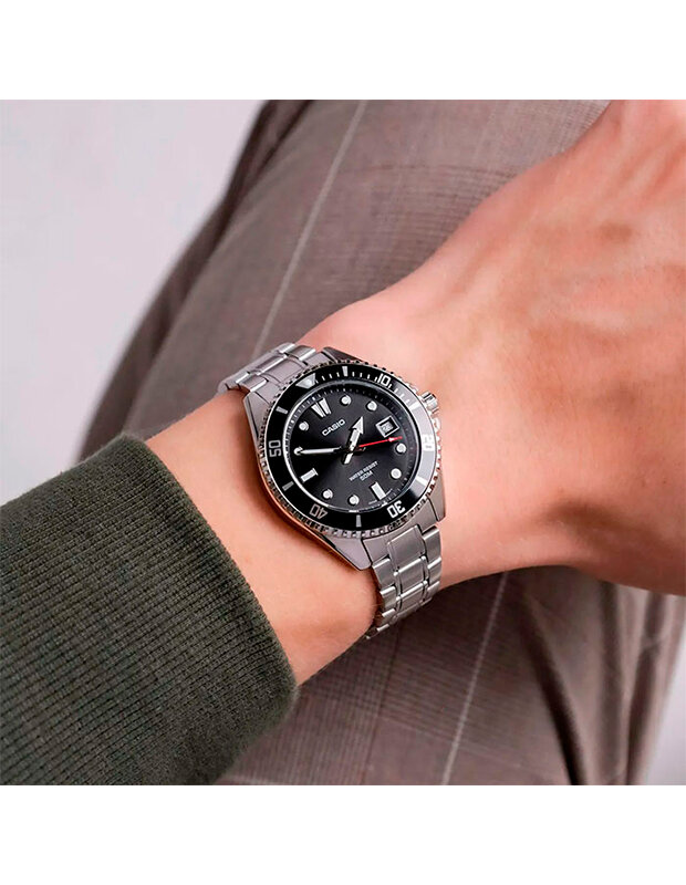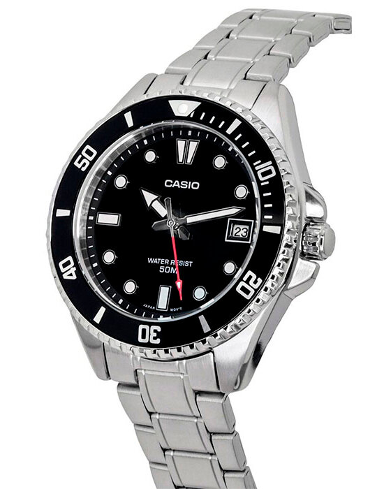 MDV-107D-1A3 Casio наручные часы кварцевые WR200 (20 атм) мужские отображение числа водонепроницаемые, поворотный безель, подсветка стрелок минеральное стекло