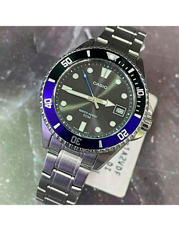 MDV-107D-1A3 Casio наручные часы кварцевые WR200 (20 атм) мужские отображение числа водонепроницаемые, поворотный безель, подсветка стрелок минеральное стекло