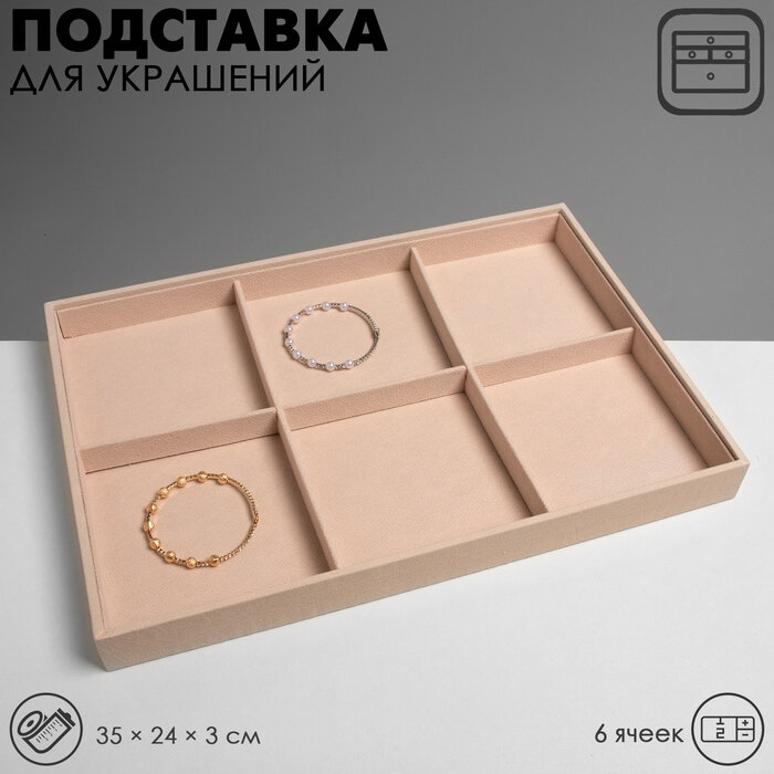 Подставка для украшений 6 ячеек, флок, 35 24 3, цвет бежевый интересное: