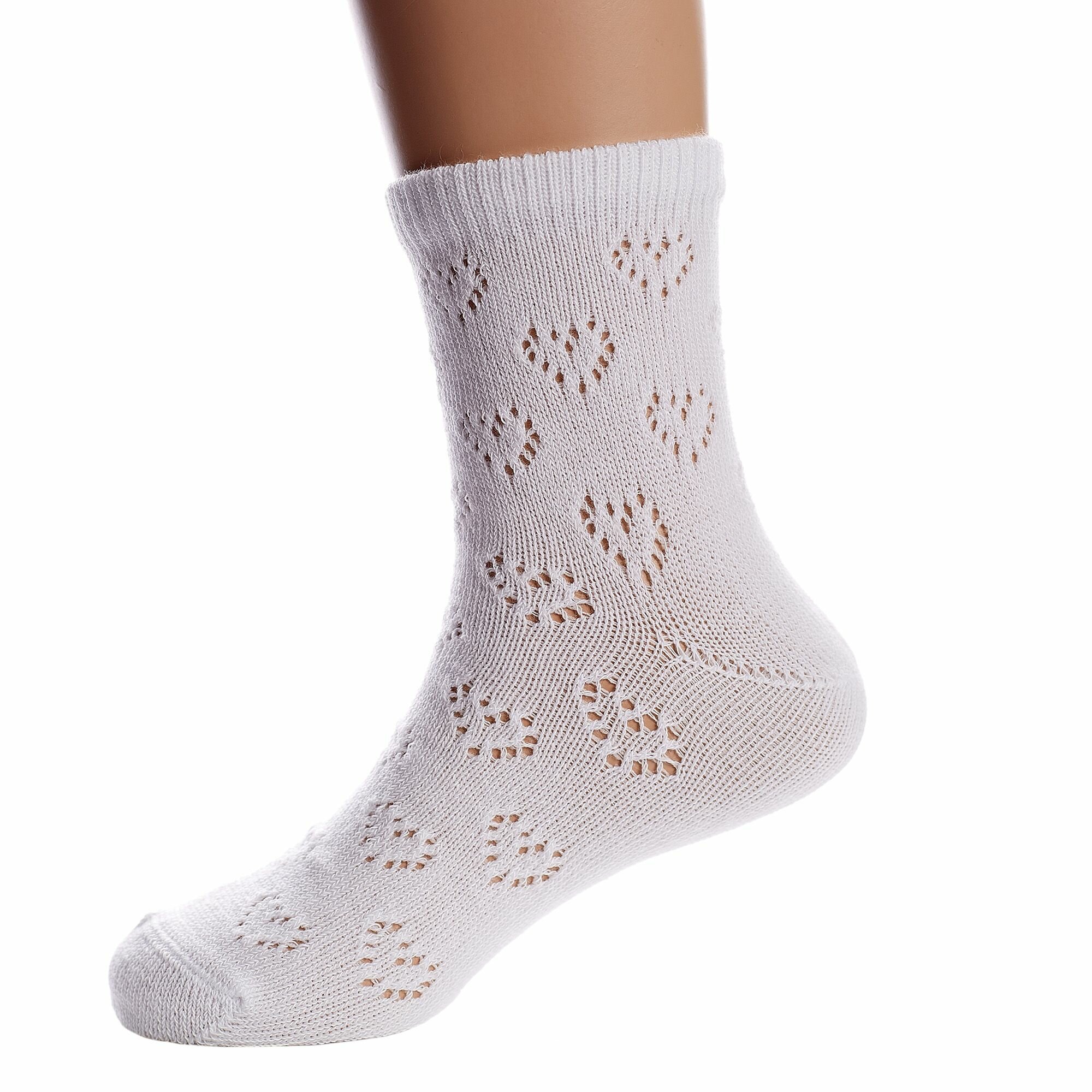 10-20С-204СП Комплект из 10 пар детских носков kids белые девочка малыши однотонные сердечки укороченные хлопок хб хлопковые ажурные летние лето конте кидс набор упаковка рис. 696