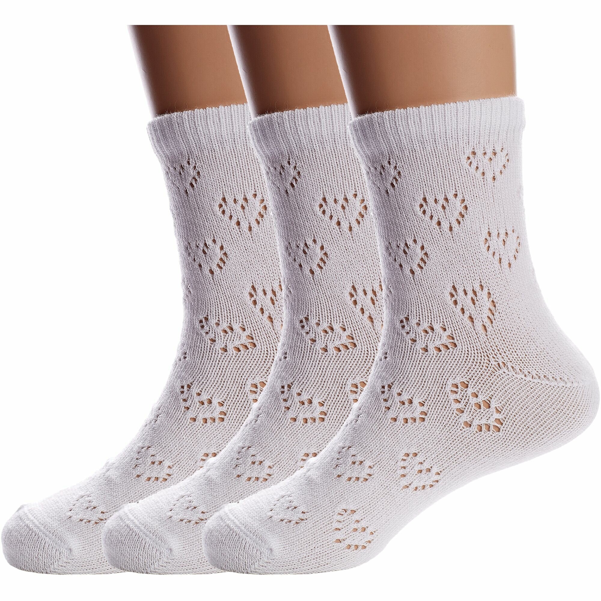 Купить 3-20С-204СП Комплект из 3 пар детских носков kids белые девочка малыши однотонные сердечки укороченные хлопок хб хлопковые ажурные летние лето конте кидс набор упаковка рис. 696