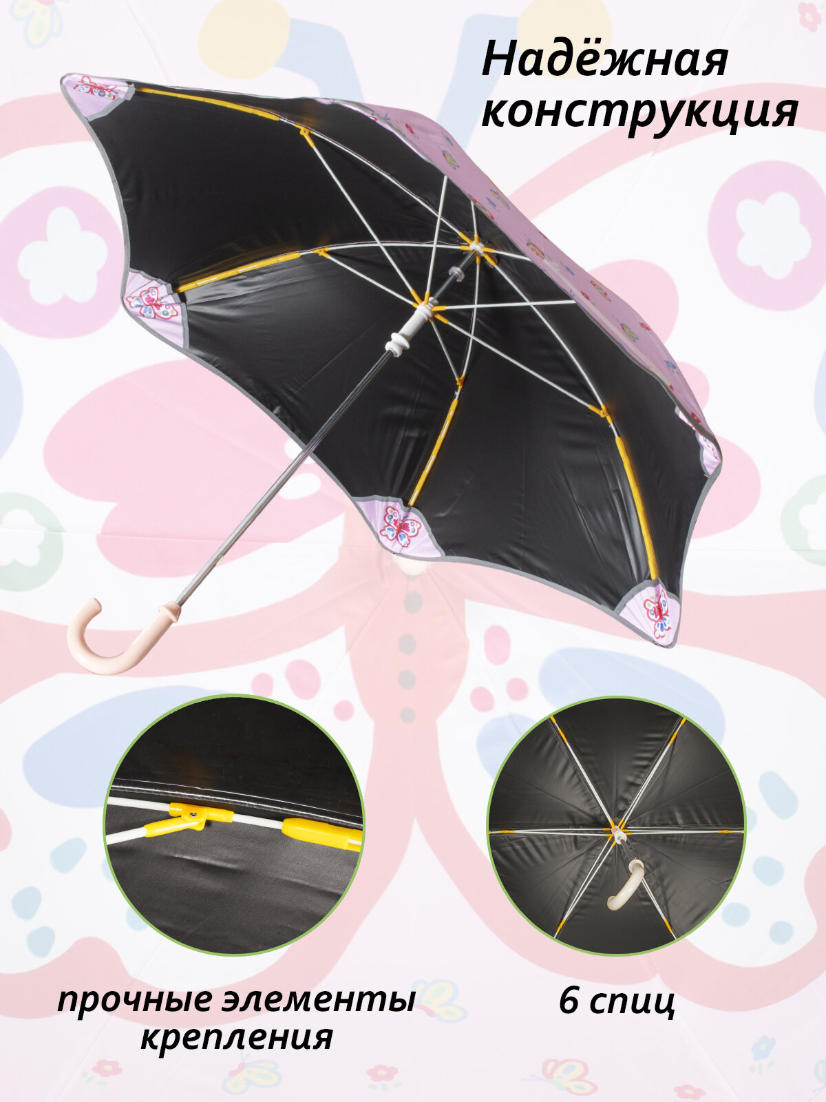 Купить Зонт детский механический складной с рисунком Белоснежка "Счастливая бабочка", 6 спиц