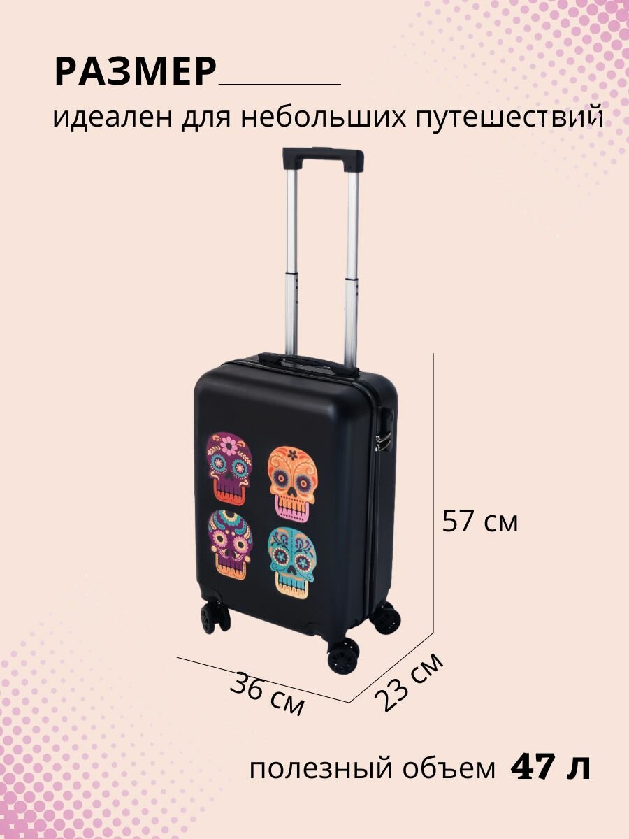 Чемодан для детей Lats 20 дюймов, 4 черепа, черный (арт. 681) интересное:
