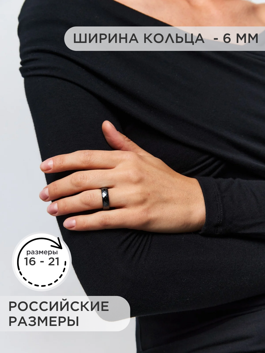 СохранитьNOIMA Кольцо керамическое женское мужское черное граненное 6 мм 18 размер интересное: