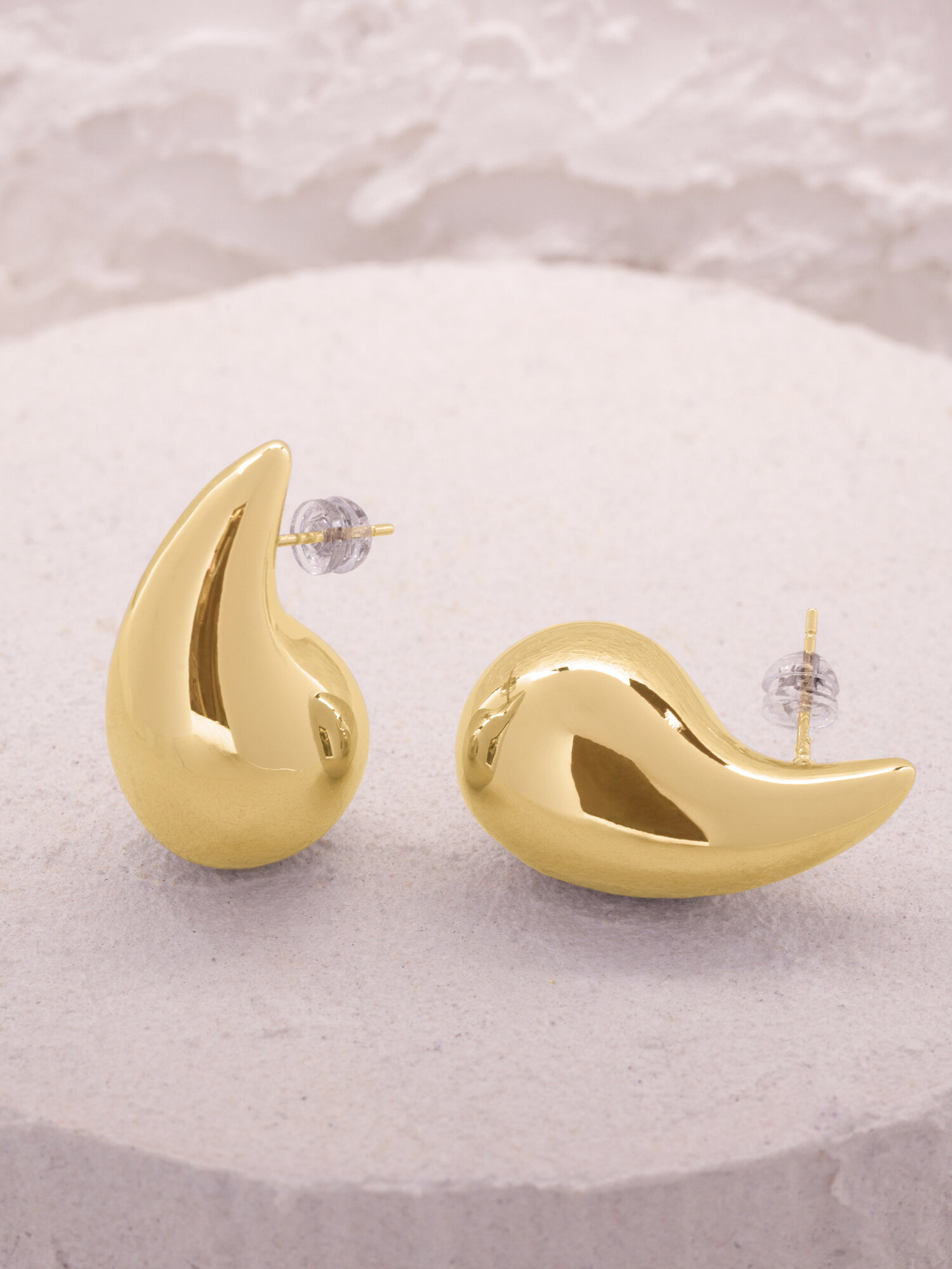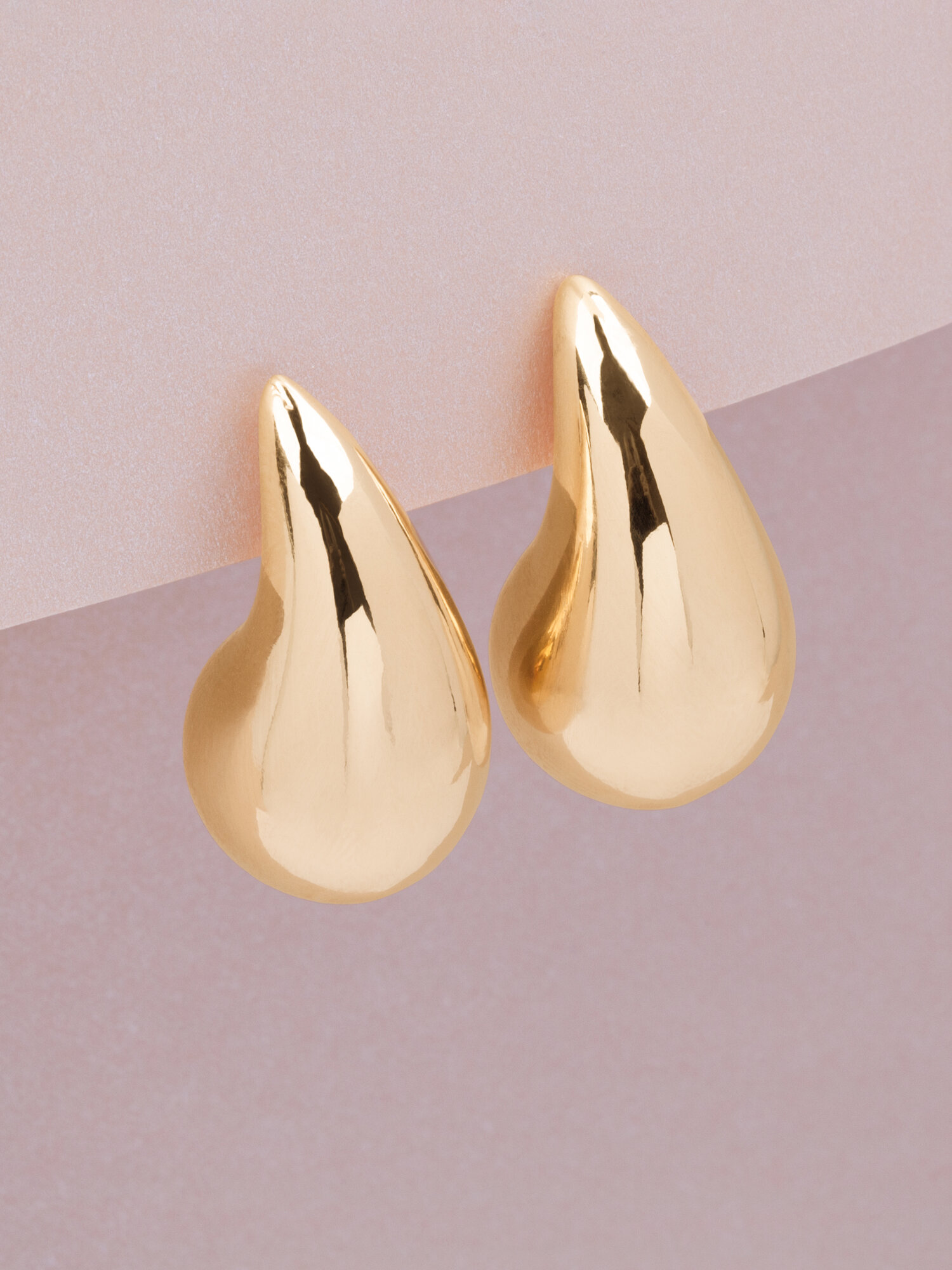 Купить Серьги - пуссеты дутые "Капли" 32 мм, золото, пара