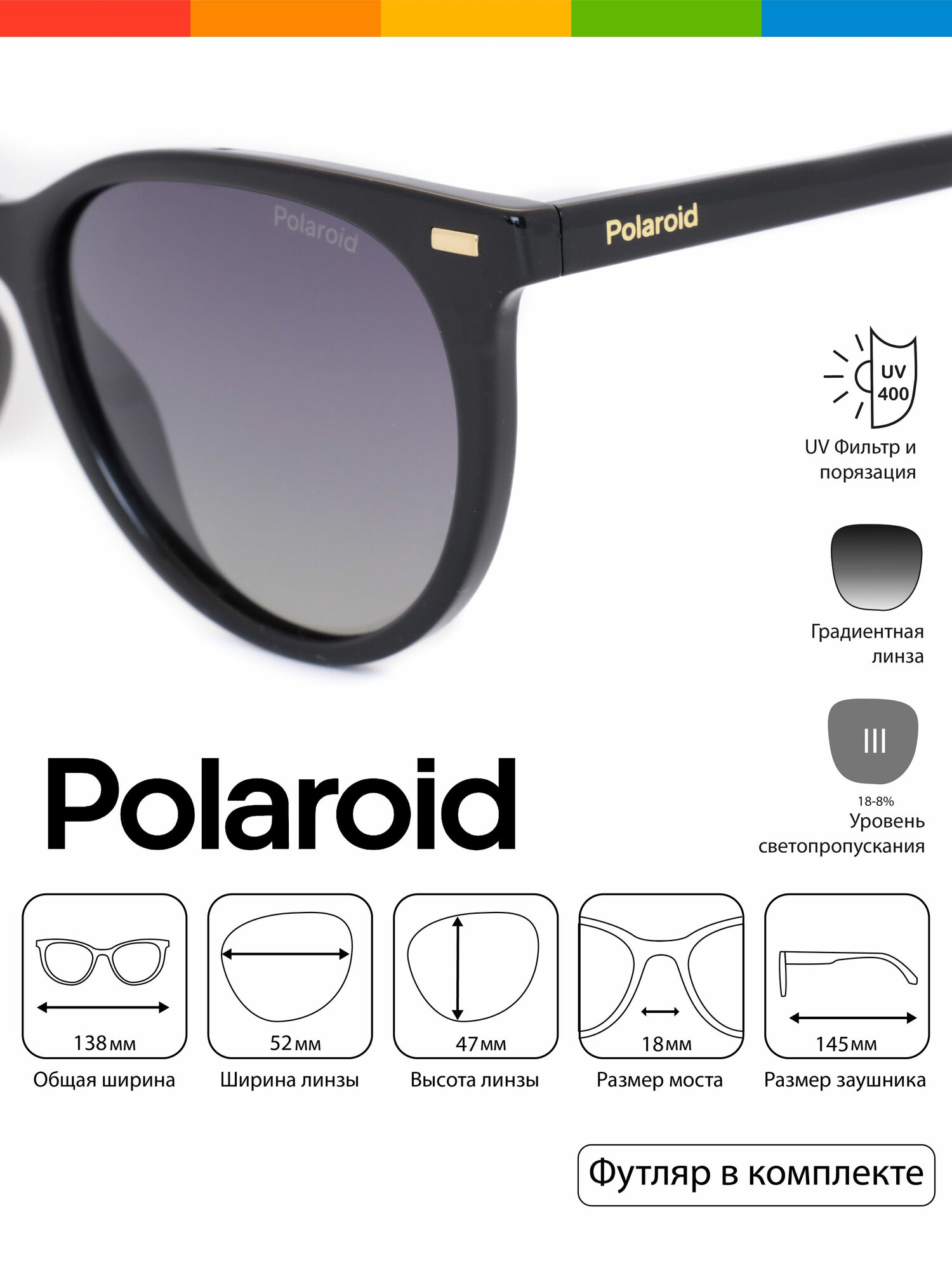 | Дополнительная информация | Эти солнцезащитные очки Polaroid изготовлены из пластика на биологической основе: настоящий must-have для женщин, которые живут настоящим, но смотрят в будущее. Две сдержанные элегантные заклепки украшают вневременную квадратную форму рамки. Цветовая палитра добавляет последний штрих, превращая этот стиль в настоящую классику. |
