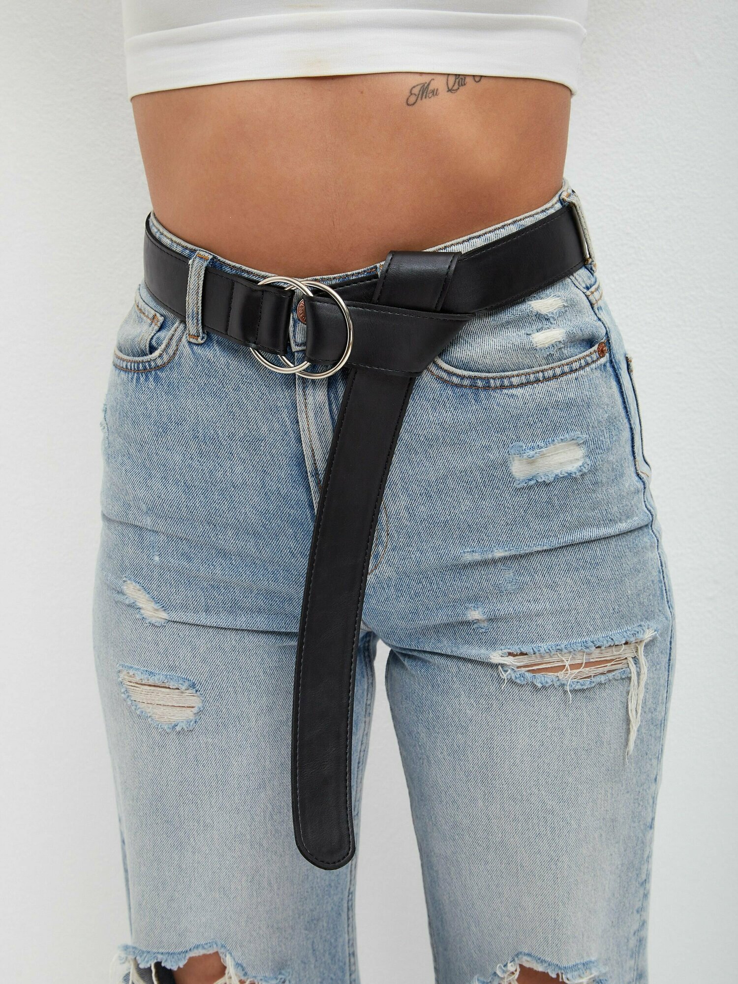 0001 черный/два кольца 140 см Ремень черный женский 40 мм пряжка никель два кольца 40-56