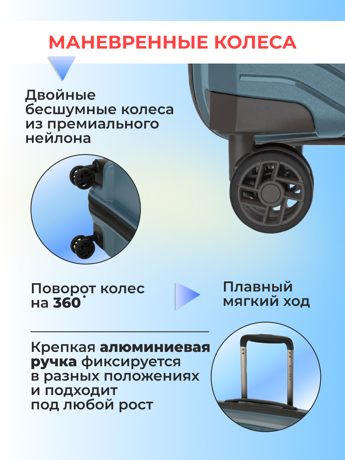 Чемодан на колесах BAUDET 812-67 (голубой/серый) M-средний, из полипропилена, 65,6 л