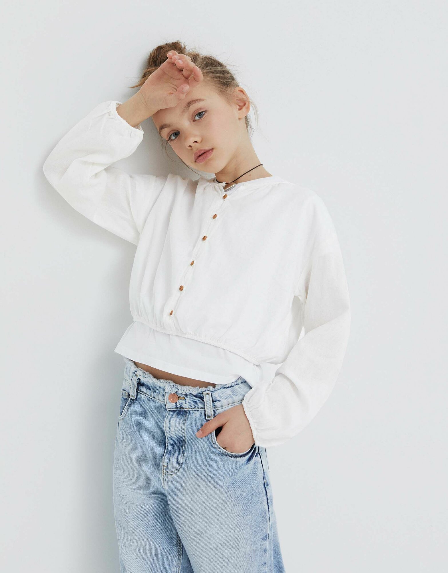 Блузка GWT003543 тканая светло-синий 6-8л/128