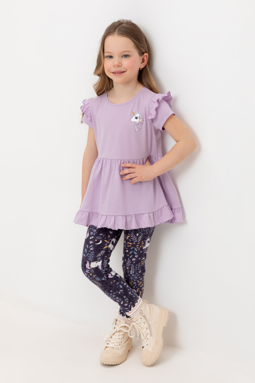 Лосины для девочки из натурального хлопка, Crockid К 4074/пастельно-лиловый,цветы р 56/110