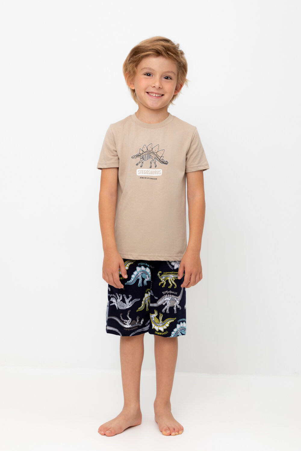 Пижама Crockid К 1528/темно-бежевый,цветные динозавры р 76/146 для мальчика из натурального хлопка