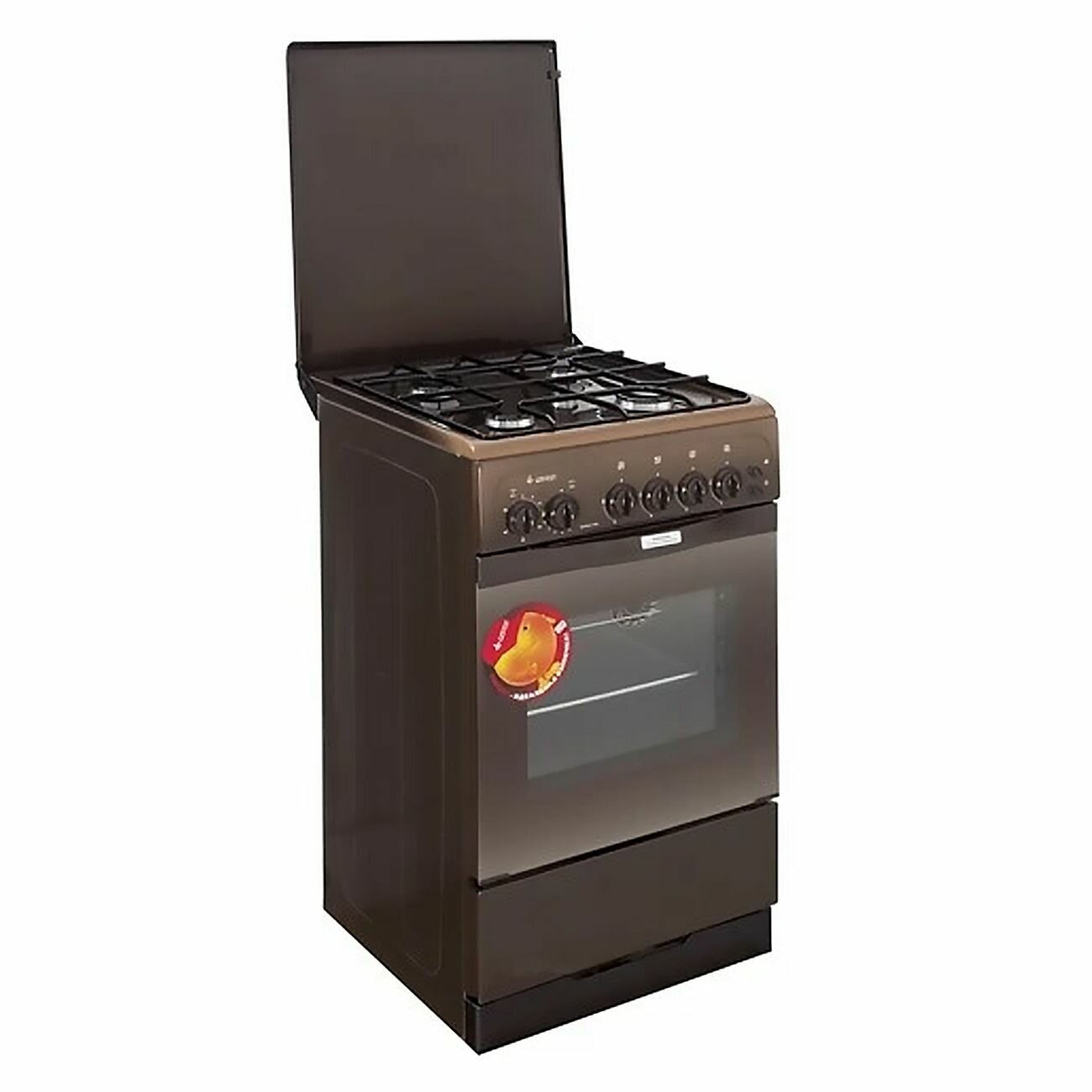 Плита газовая GEFEST 3200-05 К19/К20 /коричневая, таймер,розж,термоуказатель,подсветка,выдв.ящик