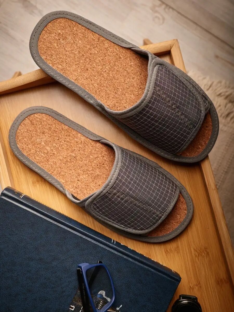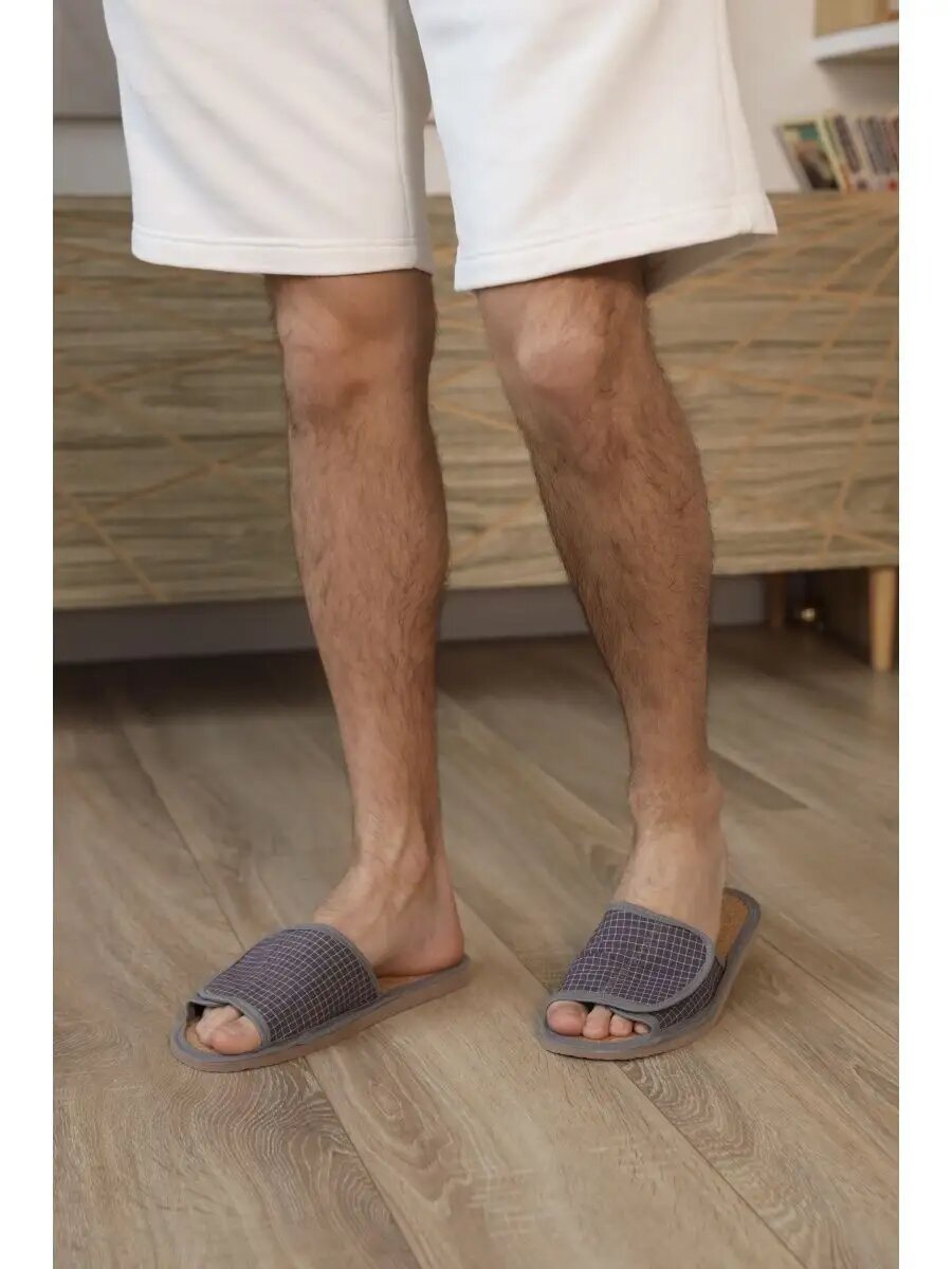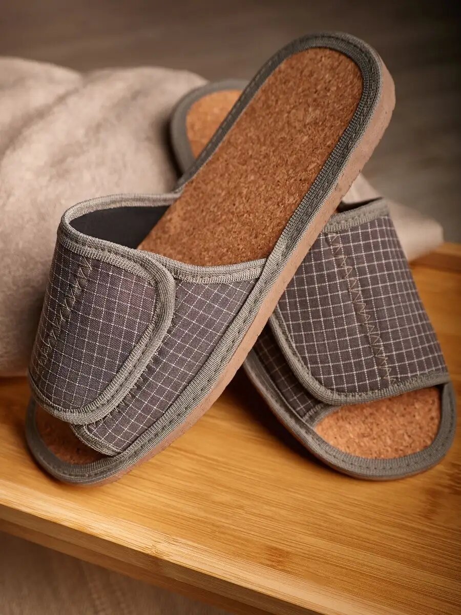 СохранитьМужские домашние тапки "LepiloV", открытые, на пробковой стельке и липучке. Размер 40. Серая клетка. интересное: