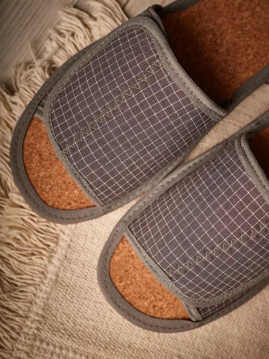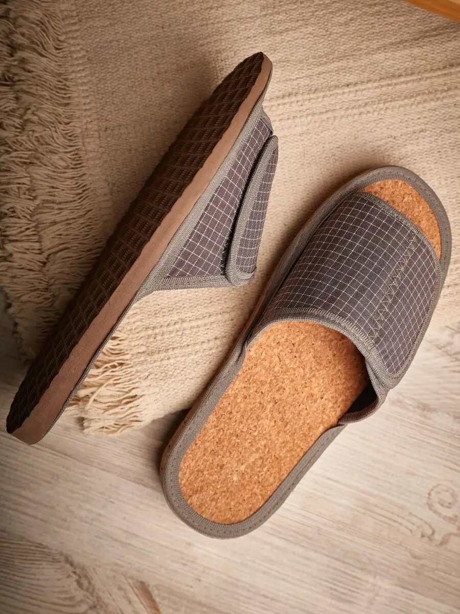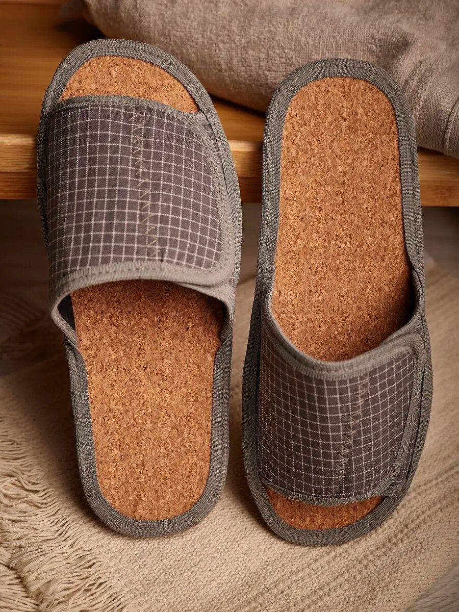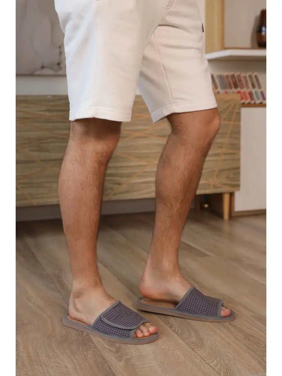 СохранитьМужские домашние тапки "LepiloV", открытые, на пробковой стельке и липучке. Размер 40. Серая клетка. интересное: