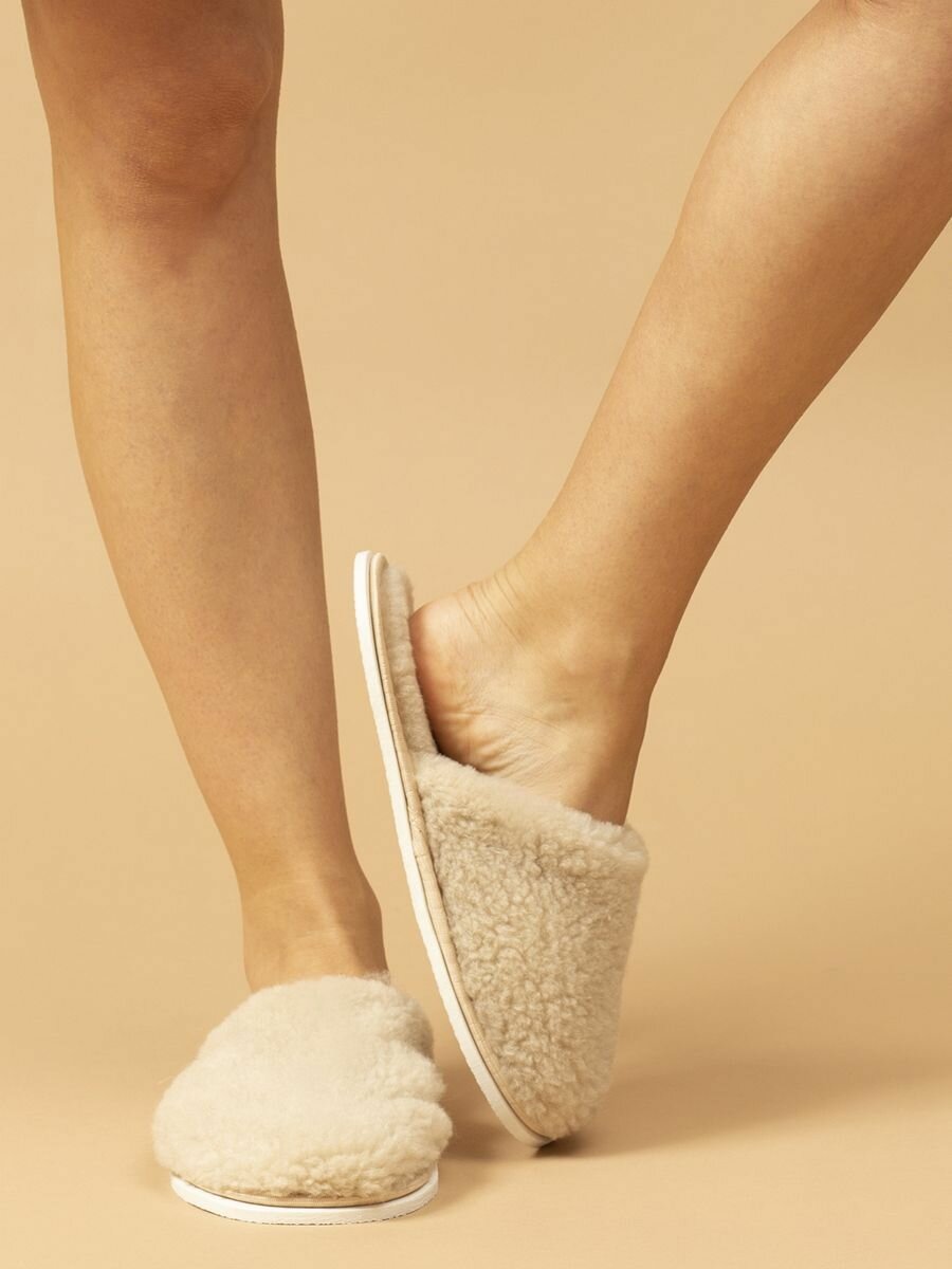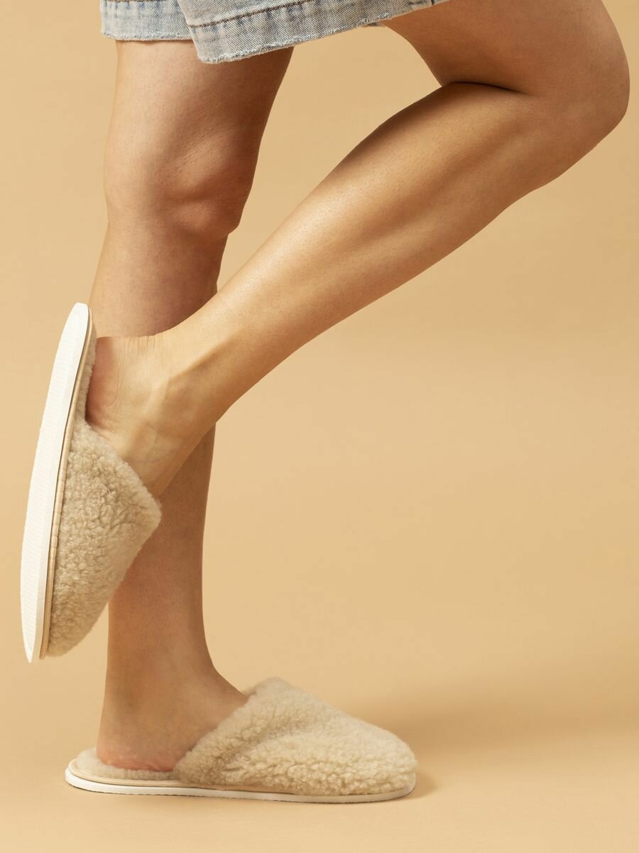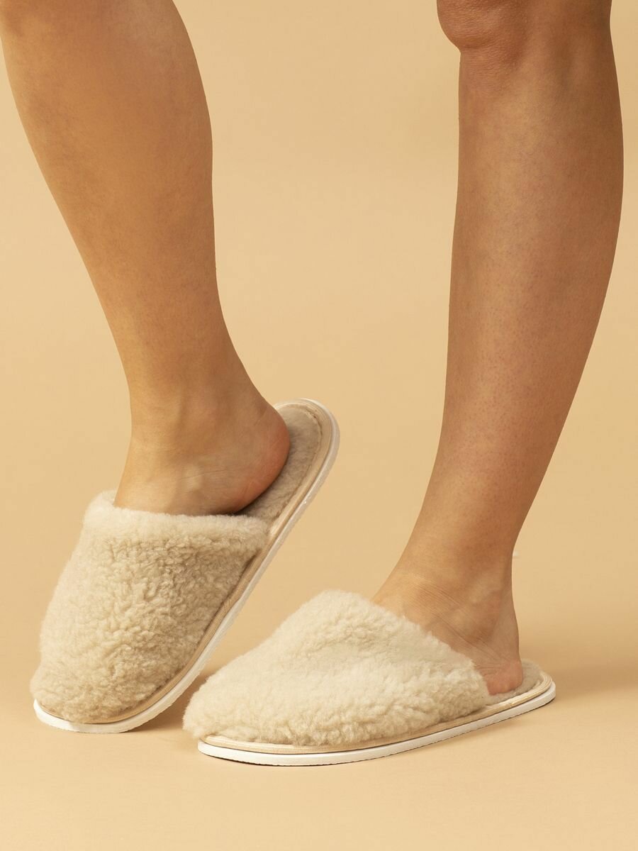 Тапочки меховые ИвШуз, светло-бежевые, размер 36-37