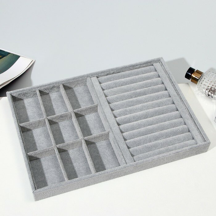 Купить Подставка для украшений 9 мест и 12 полос для колец, 35*24*3 см, цвет серый 7446623 .