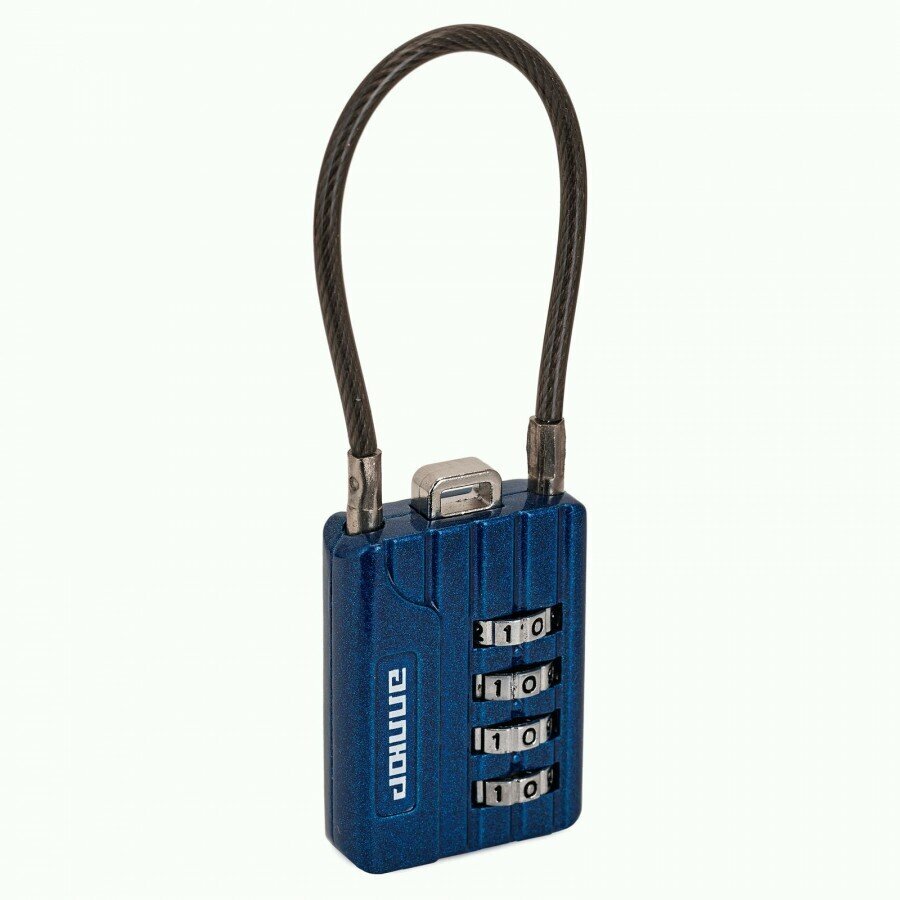 Купить Замок висячий для багажа ВС1КТ-30/3 (H2) синий с тросиком кодовый d=3мм аллюр