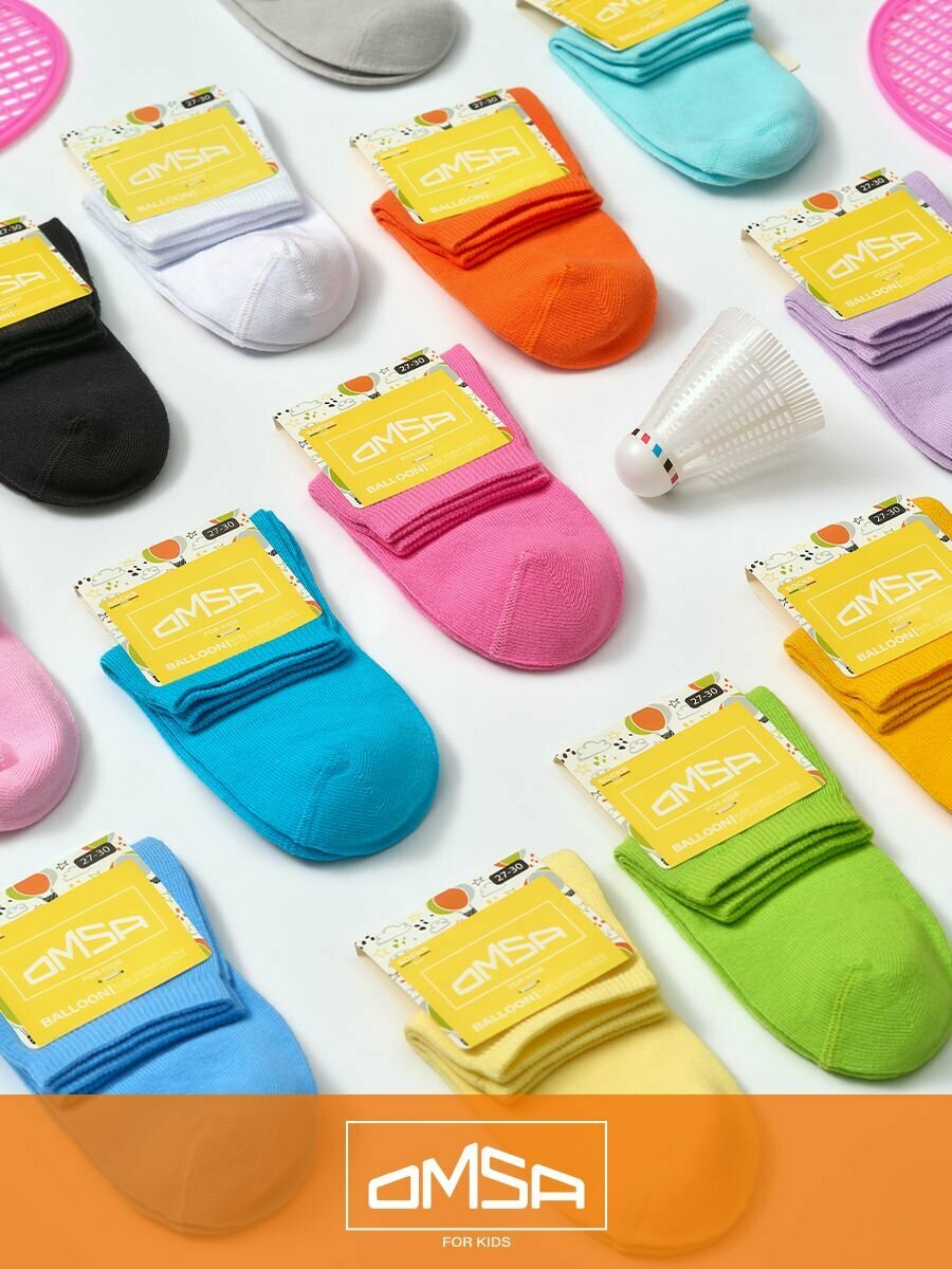 Носки детские OMSA kids Calzino 21C02, короткие, цветные, хлопок , набор 5 пар, цвет Bianco/Grigio Chiaro/Azzurro/Lime/Rosa Chiaro, размер 31/34