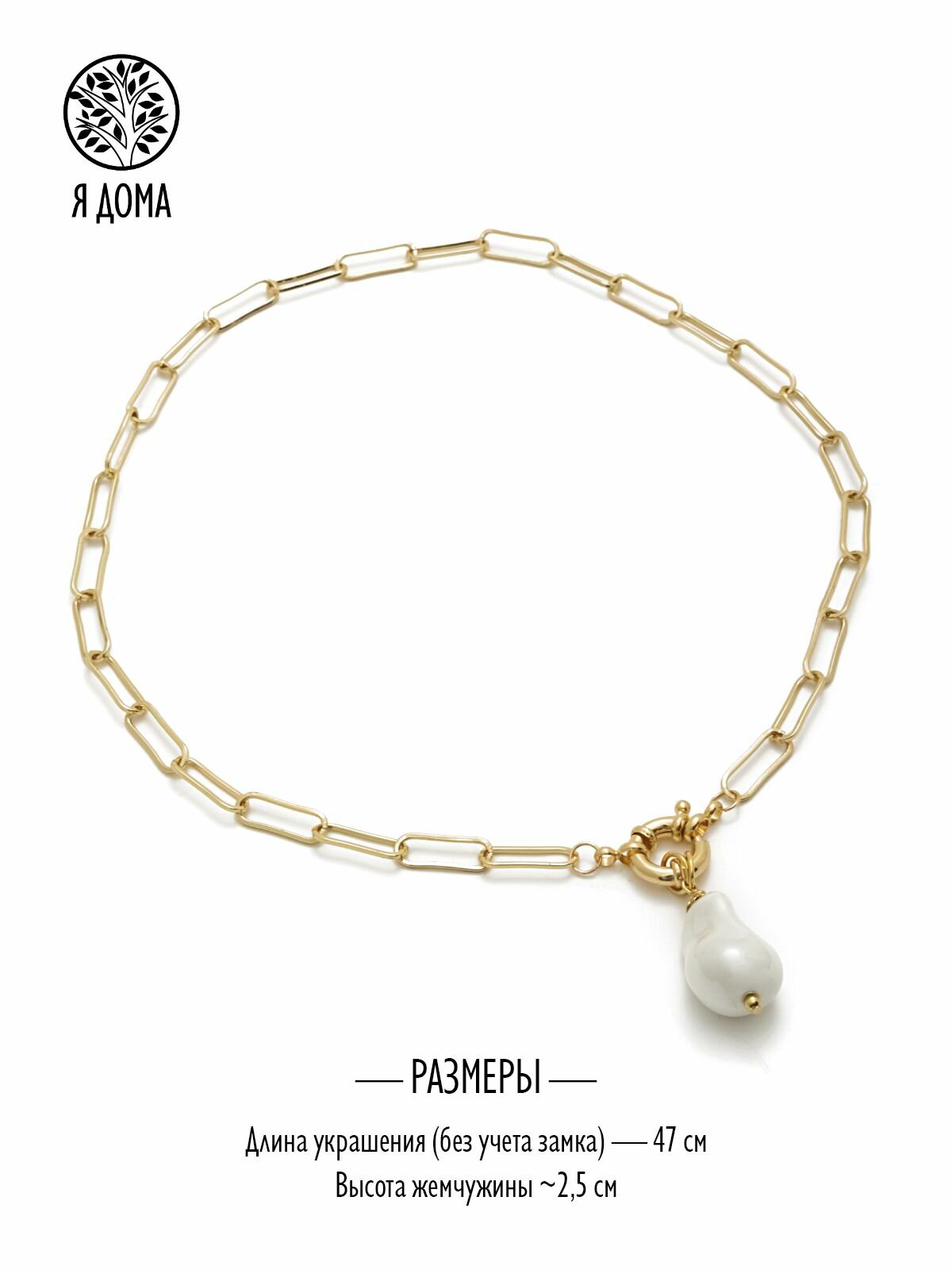 Колье цепь с жемчугом майорка