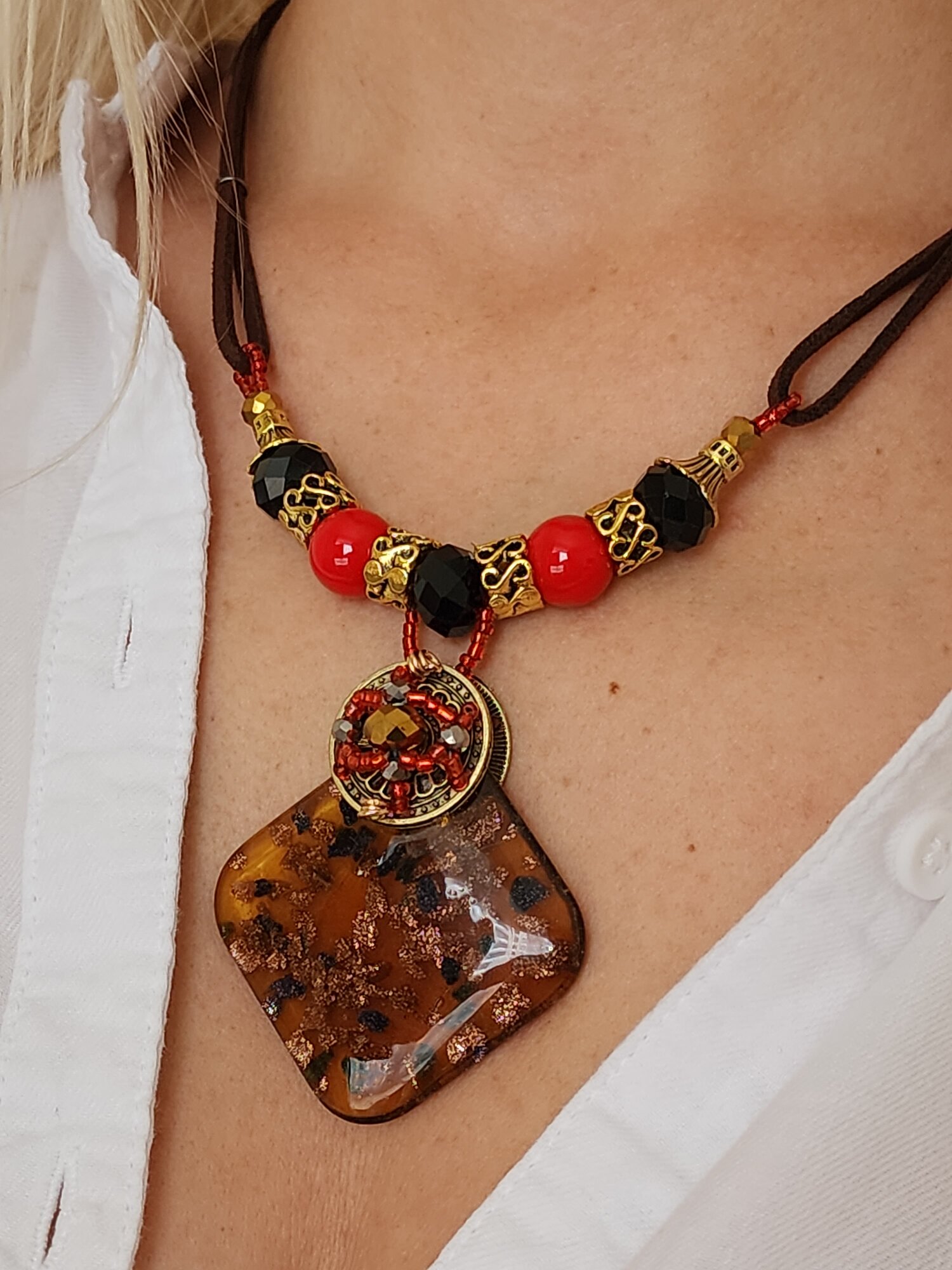 Колье с подвеской из муранского стекла имитация бижутерия