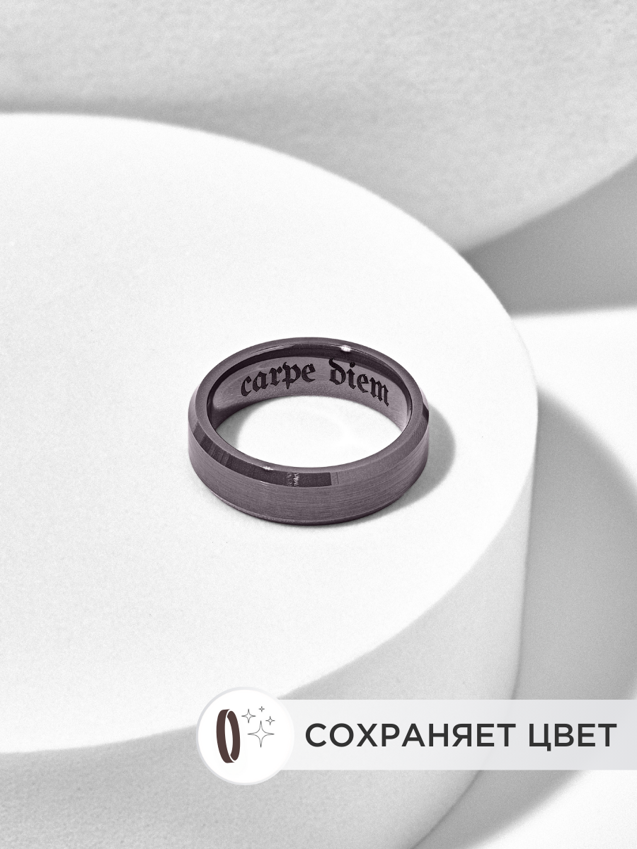СохранитьКольцо серое из керамики с гравировкой "Carpe Diem" 17,5 размер интересное: