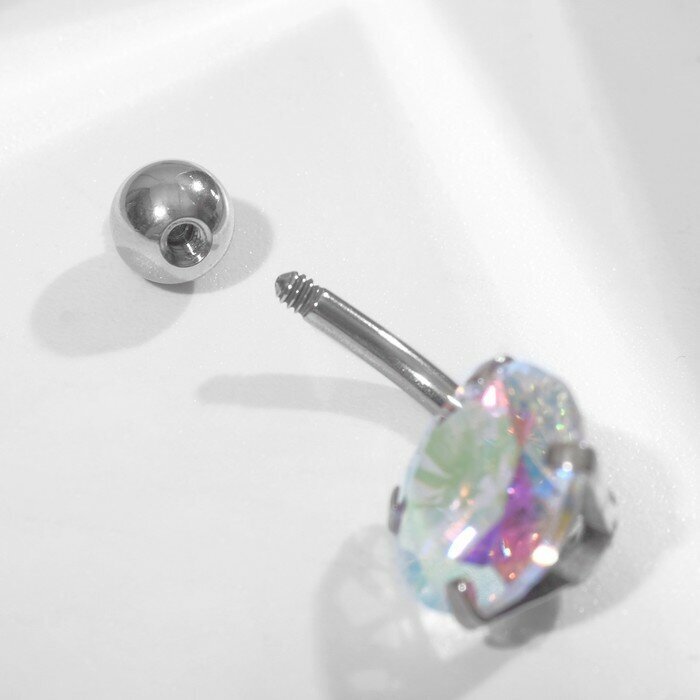 Пирсинг в пупок «Банан» с цирконом, L=2,3 см, цвет радужный в серебре интересное: