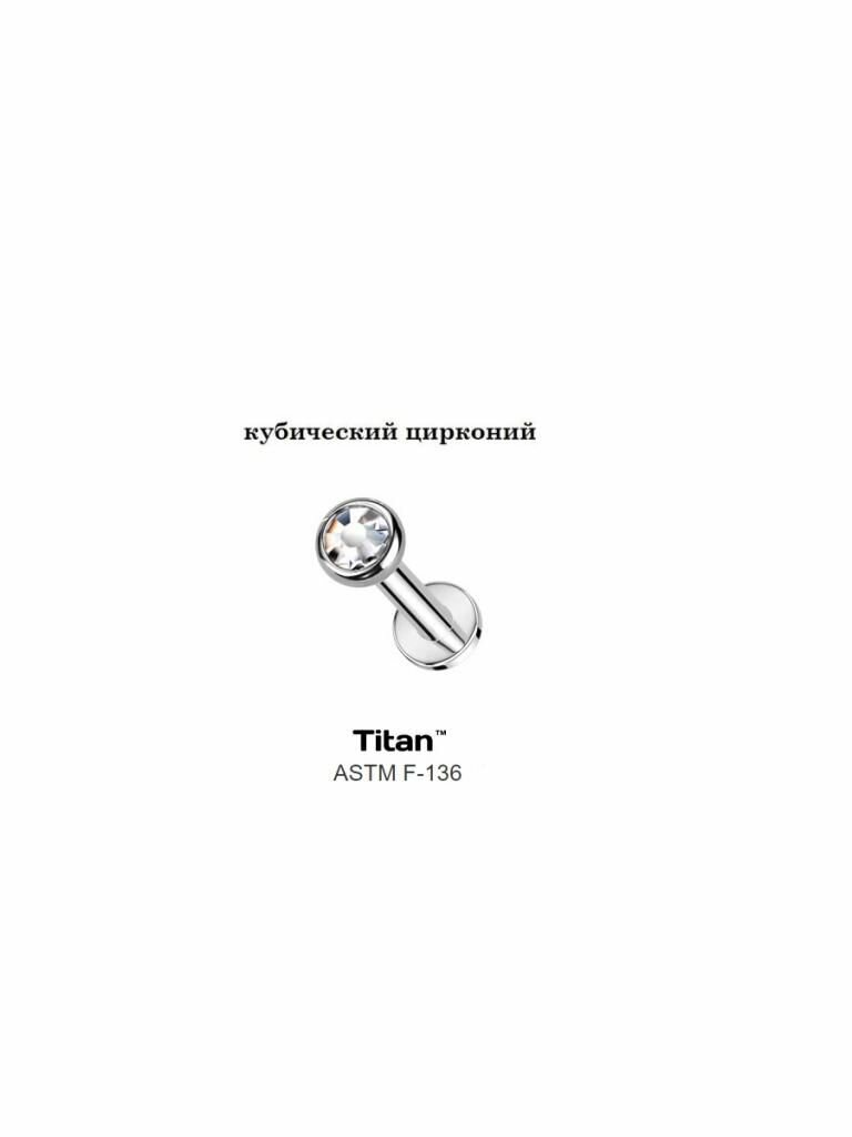 Титановая серьга лабрет с внутренней резьбой для пирсинга Монро, трагуса, хеликса/ 1.2*8 мм (кристалл: кубический цирконий)