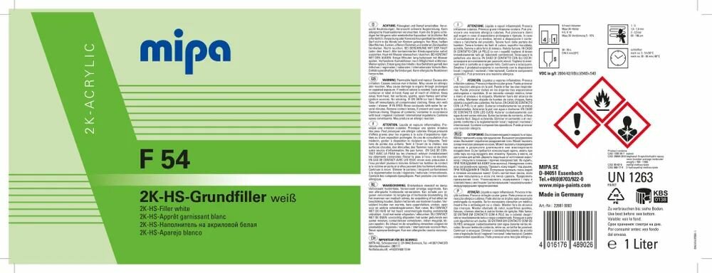 Mipa 2K HS F54 Grundfiller(4+1) + отвердитель H 5 (1л + 0,25л)белый интересное: