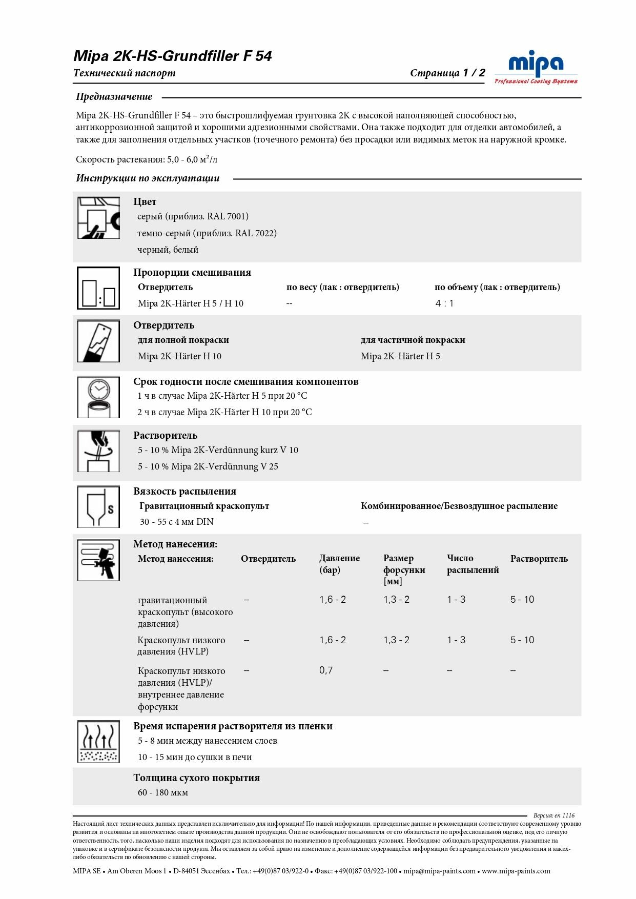 СохранитьMipa 2K HS F54 Grundfiller(4+1) + отвердитель H 5 (1л + 0,25л) черный интересное: