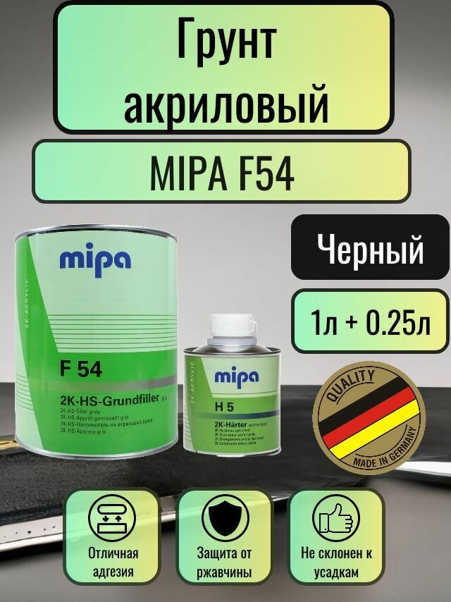 Купить Mipa 2K HS F54 Grundfiller(4+1) + отвердитель H 5 (1л + 0,25л) черный