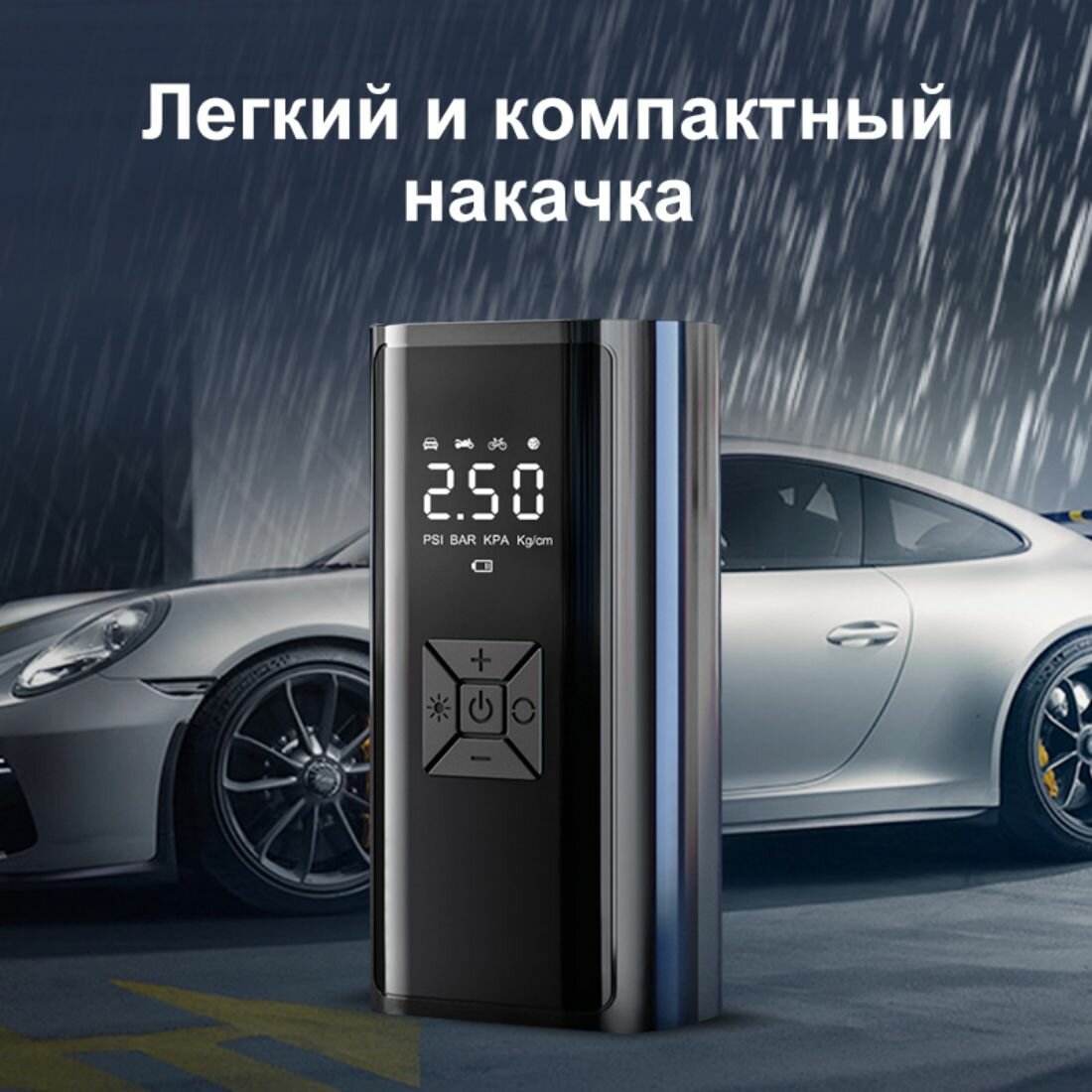 Насос Автомобильный с LED экраном, Автомобильные компрессоры, Беспроводной Компрессор Автомобильный Двухпоршневой, встроенным АКБ и зарядкой от USB (Черный)